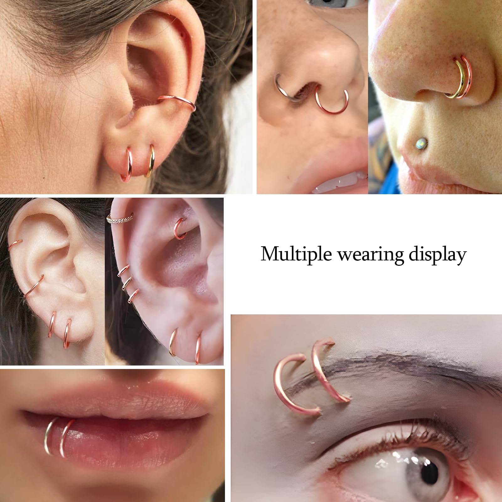 20g Rose Gold Nose Rings:Solid color retention, won't tarnish or turn green even you wear them everyday in the shower or while swimming, they are waterproof, sweat-proof, rust-resistant and hypoallergenic.