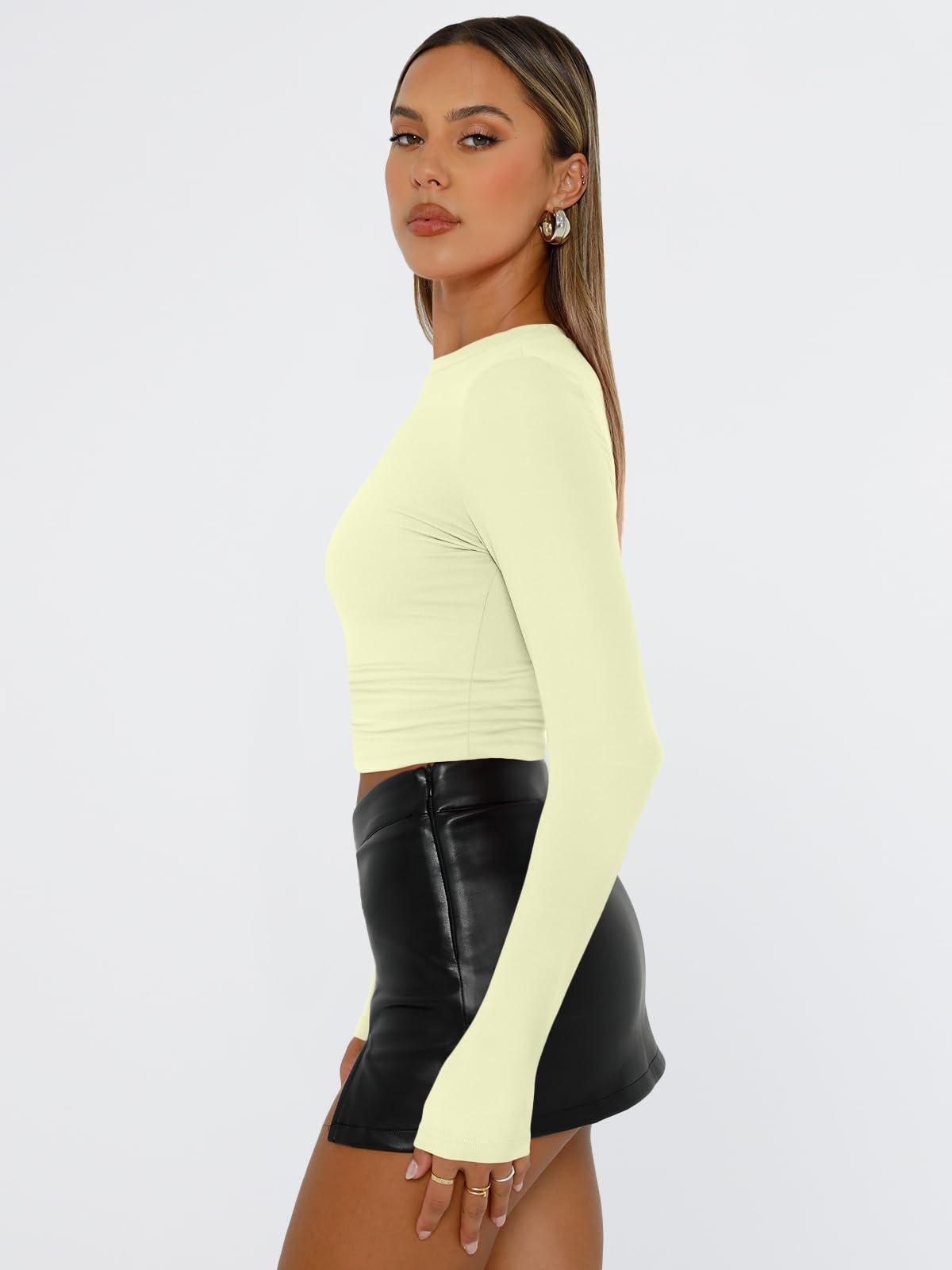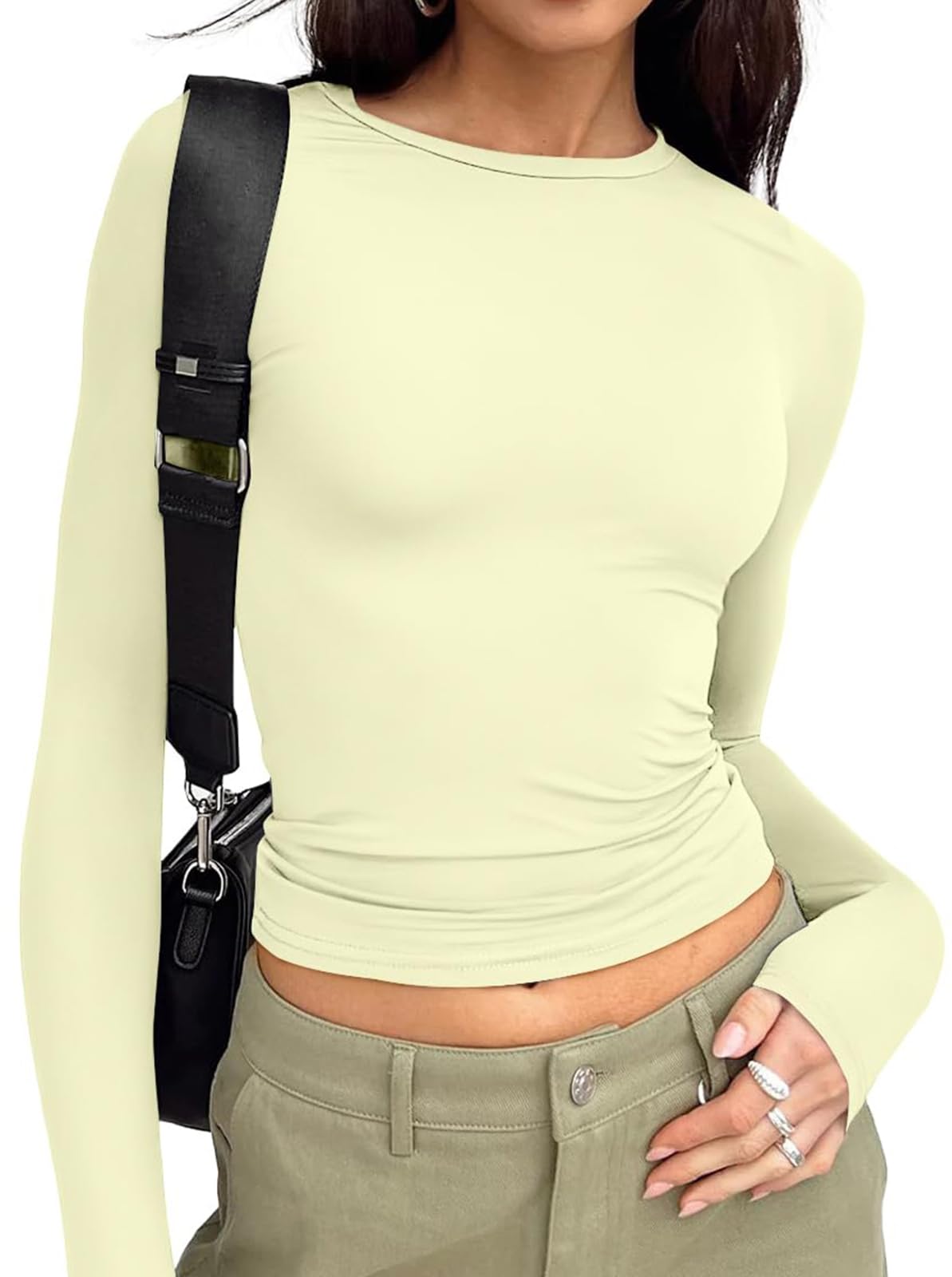 Design: Cropped and stretch fitted style,crew neck, tight underscrubs layer,you can wear it regularly or fold it up like a crop top,cute,slim fit,casual y2k style fashion
