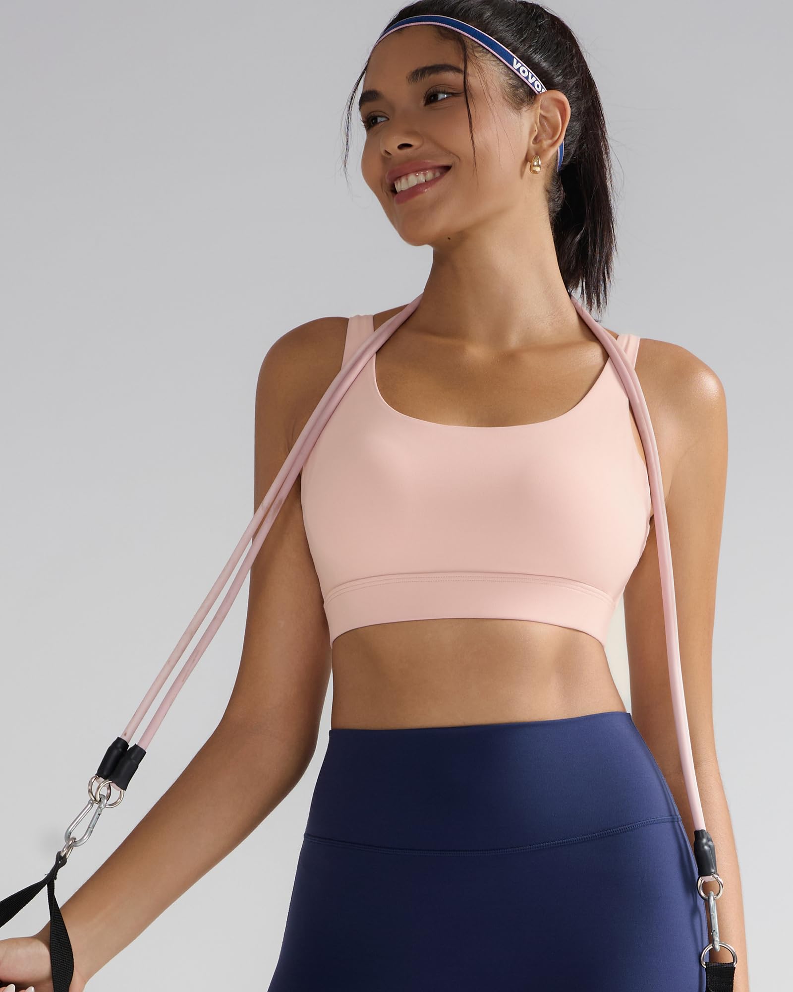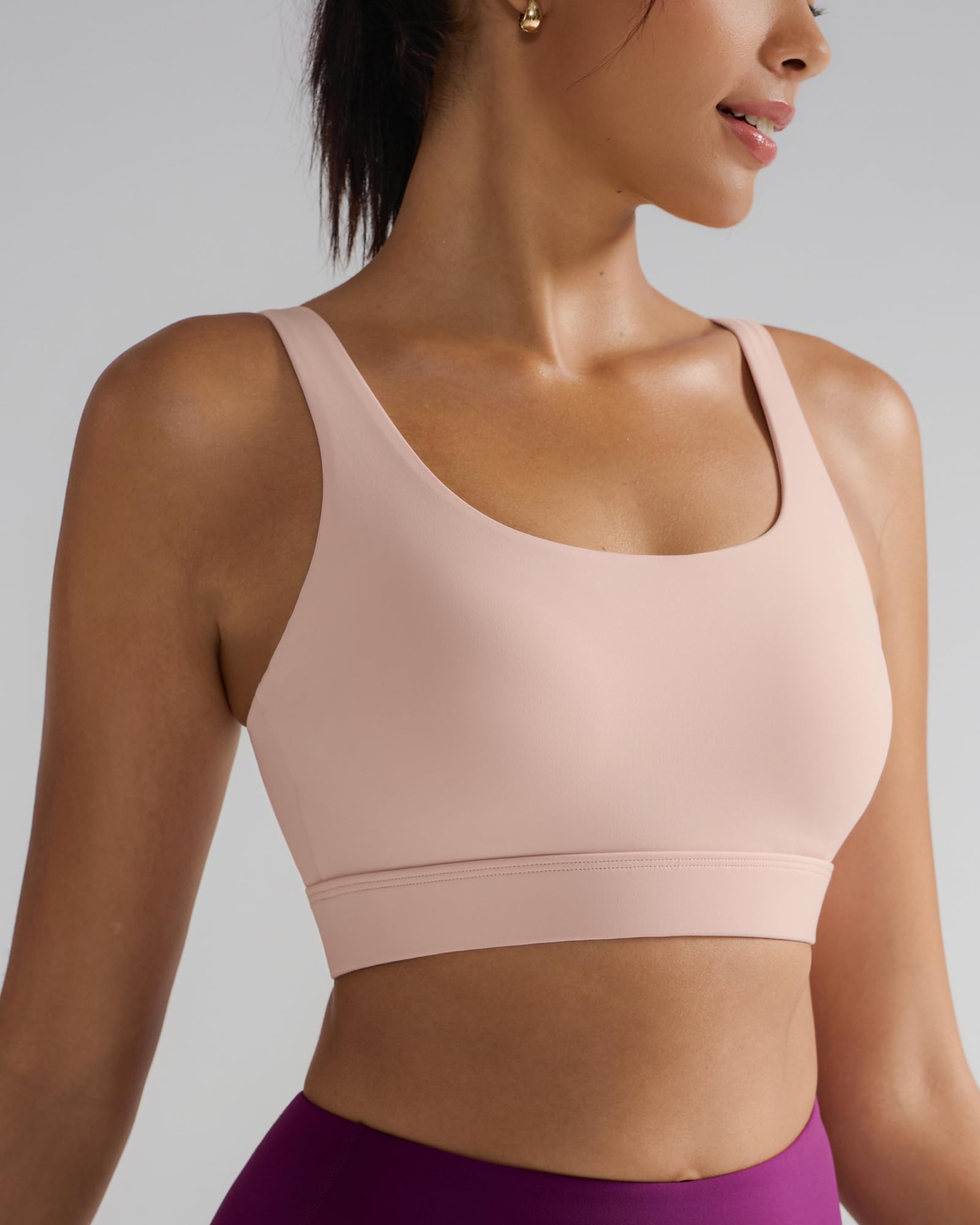 【Your Everyday Secret Weapon】Nail that "effortlessly cool" vibe without sacrificing an ounce of comfort. This isn't your basic sports bra—it's your go-to high support sports bra for everything from WFH days to last-minute errands.Built with supportive 4D-stretch Lycra that hugs you in all the right ways, delivering the secure, medium-high impact support you need with the second-skin comfort you want.