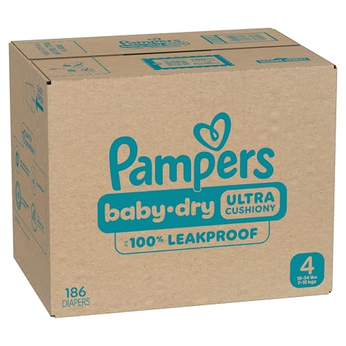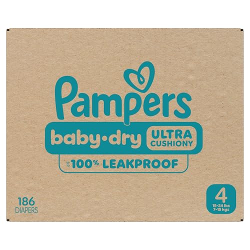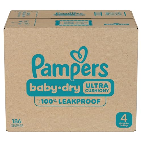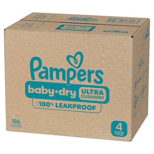 Pampers Diapers - Baby Dry - Size 4, 186 Count, Absorbent Disposable Infant Diaper