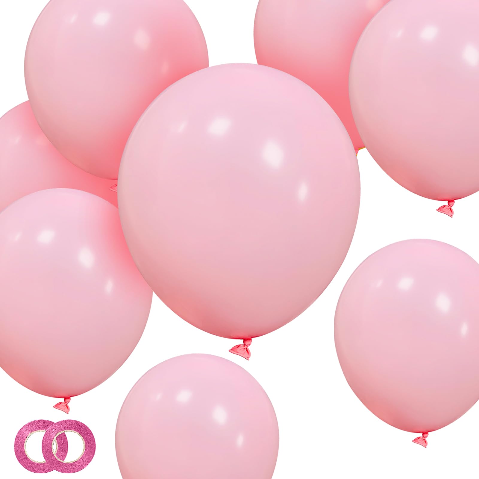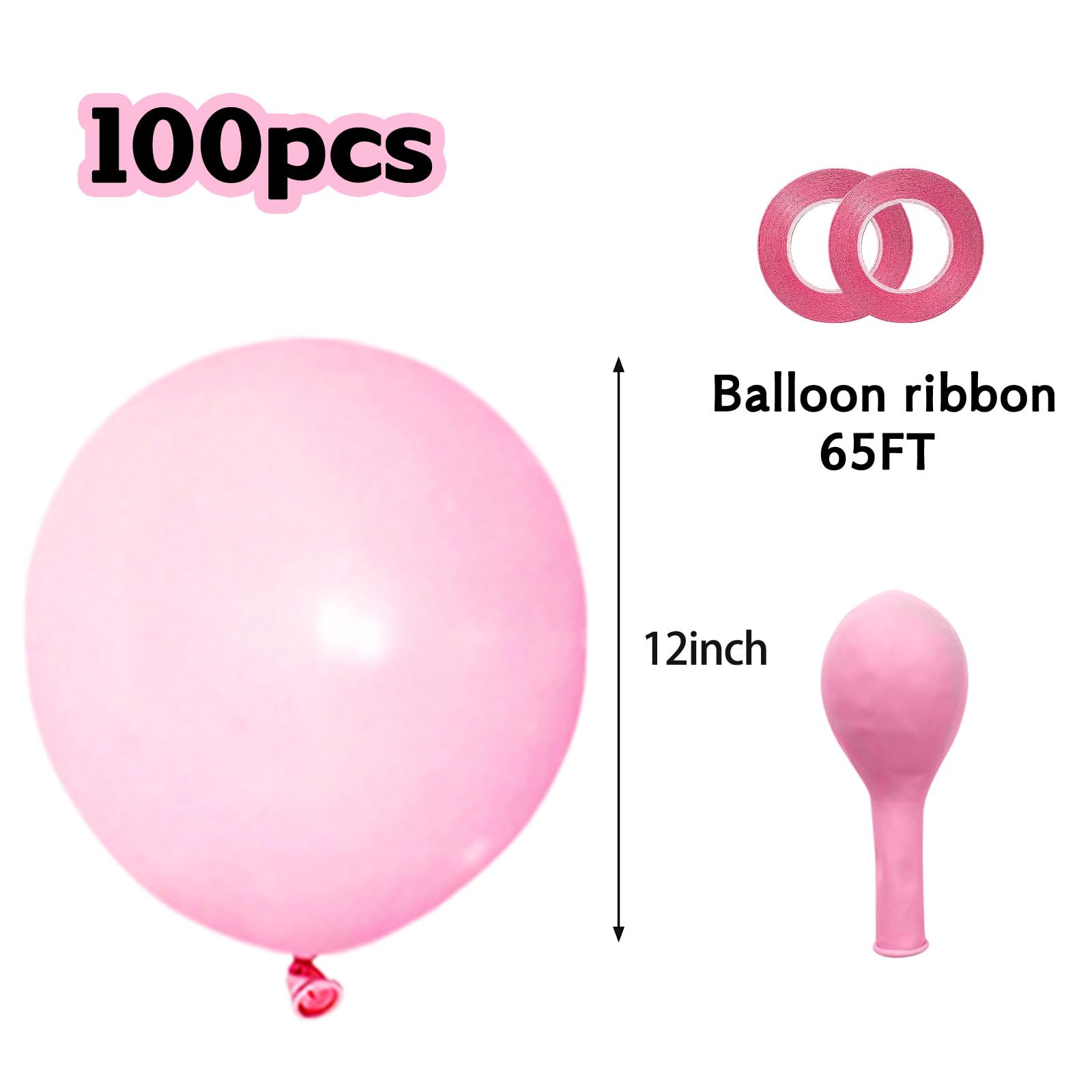 【Pastel Pink Balloons 12 Inch】The package includes 100 pack thicken latex pink baloons with 2 rolls of ribbon(65FT), Enough quantity can meet your daily life, festival or party decoration needs.