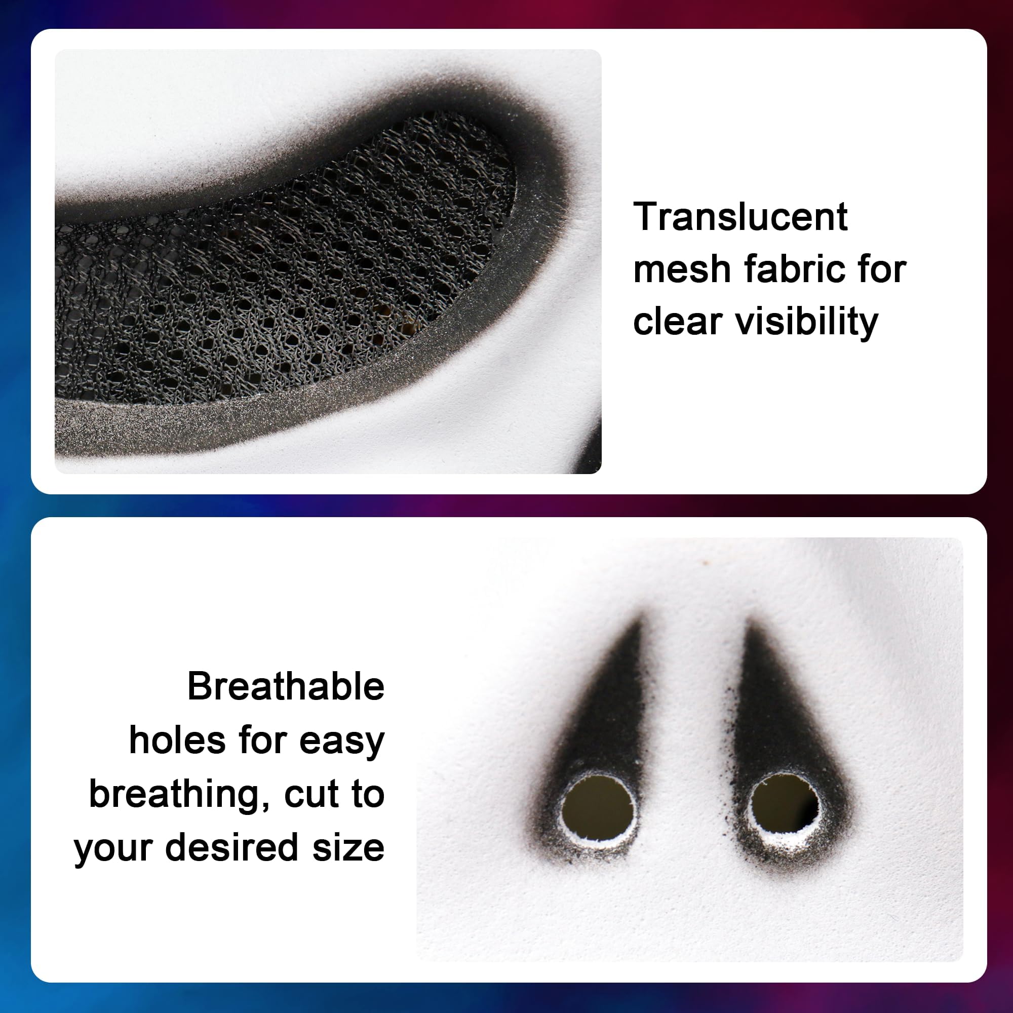 Dynamic Movement Design: Experience enhanced mobility with confidence! The flexible EVA construction moves naturally with you, while adjustable vent openings help minimize fogging. Ideal for immersive role-playing, escape adventures, and haunted attractions