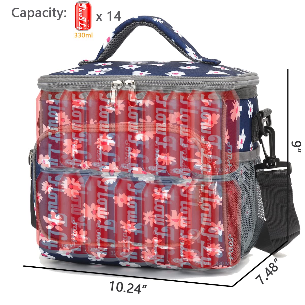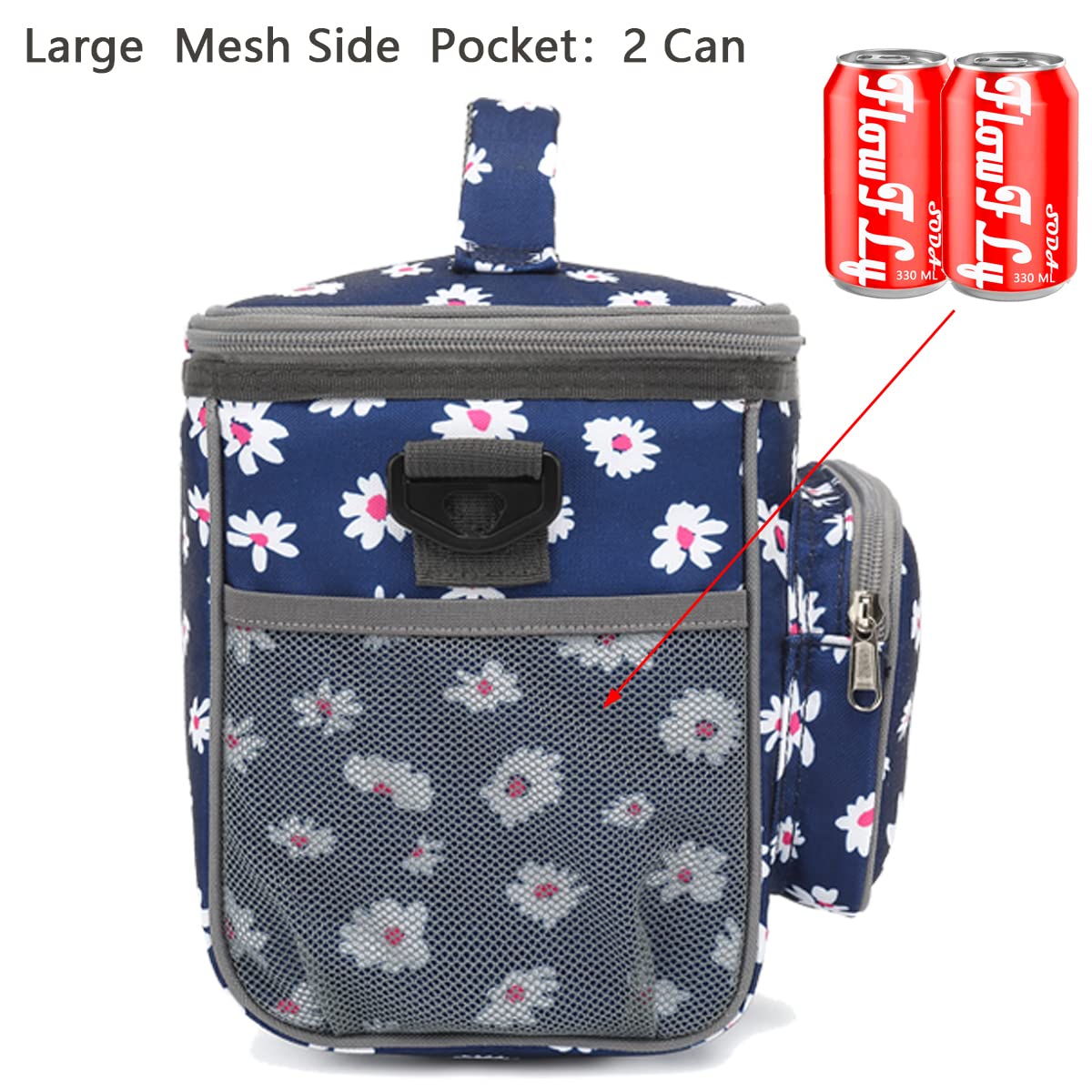 ✿ Large Size:the dimension of the container is:10.24”L×7.48”W×9.06”H,but not too bulky , it could give roomy storage space you need to hold your favotite meals,delies and lunch treats.You could fill the roomy compartments or pockets with lunch boxes, food containers, condiments,fruit salad bowls,utensils,napkins,can opener,wallet,keys and other essentials. Keep your water bottles or energy drinks inside the mesh pocket and quench your thirst of the spot.