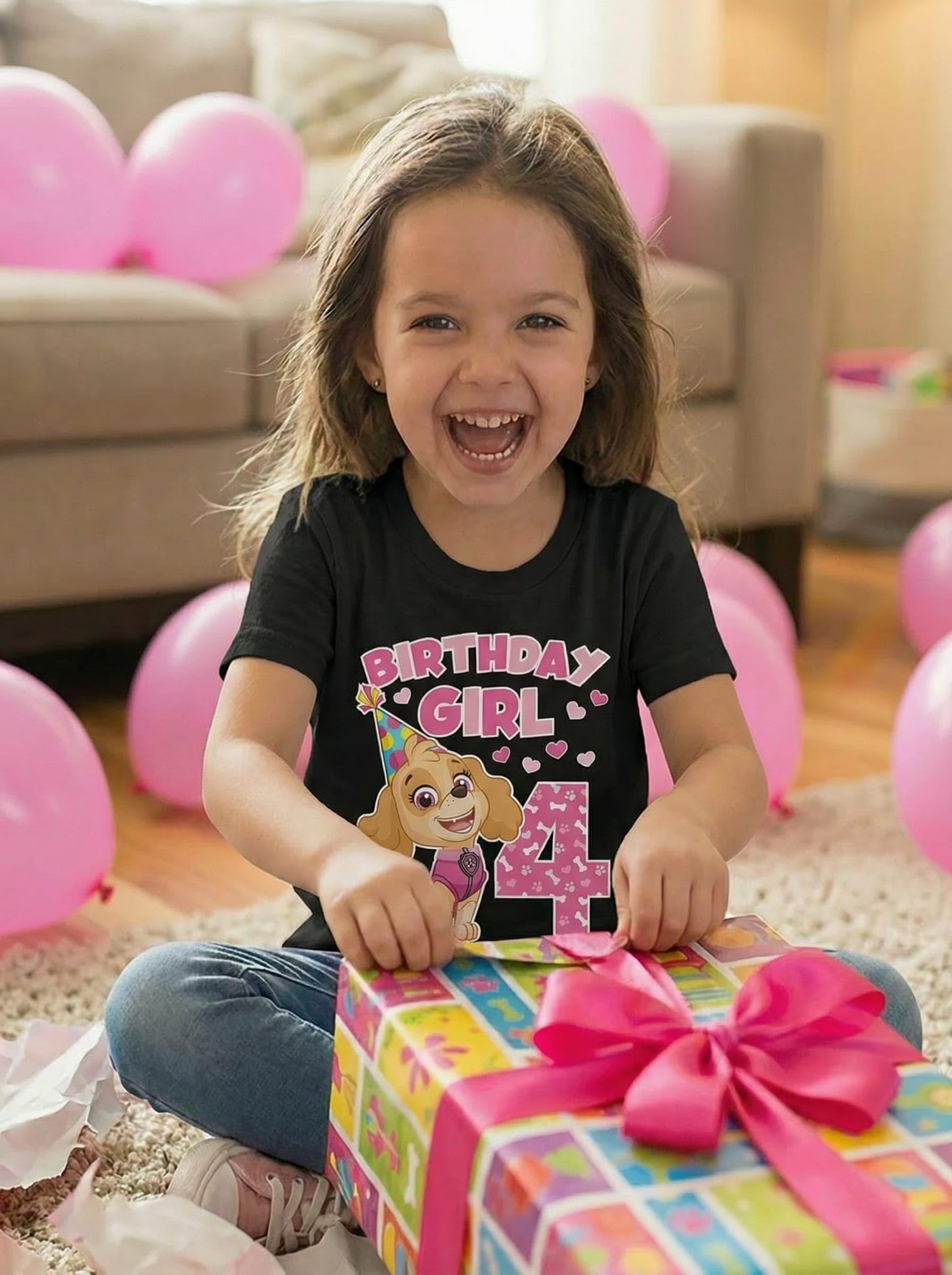 Description Let your birthday girl soar into her special day with this adorable Skye Paw Patrol Birthday Shirt! Designed for fans of everyone's favorite flying pup, this tee is a perfect choice for 4th birthday parties, preschool celebrations, or any pup-themed adventure. Made from soft, breathable cotton, it's gentle on sensitive skin and comfy enough for all-day birthday fun--from blowing out candles to jumping into party games. The vibrant Skye design pops in photos and holds up wash after wash, making it a favorite long after the party's over. Whether you're shopping for your own little one or surprising a Paw Patrol-loving niece or granddaughter, this shirt makes a thoughtful gift for any 4 year old girl. Easy to pair with tutus, jeans, or leggings, it's an instant birthday outfit that brings smiles and tail wags.