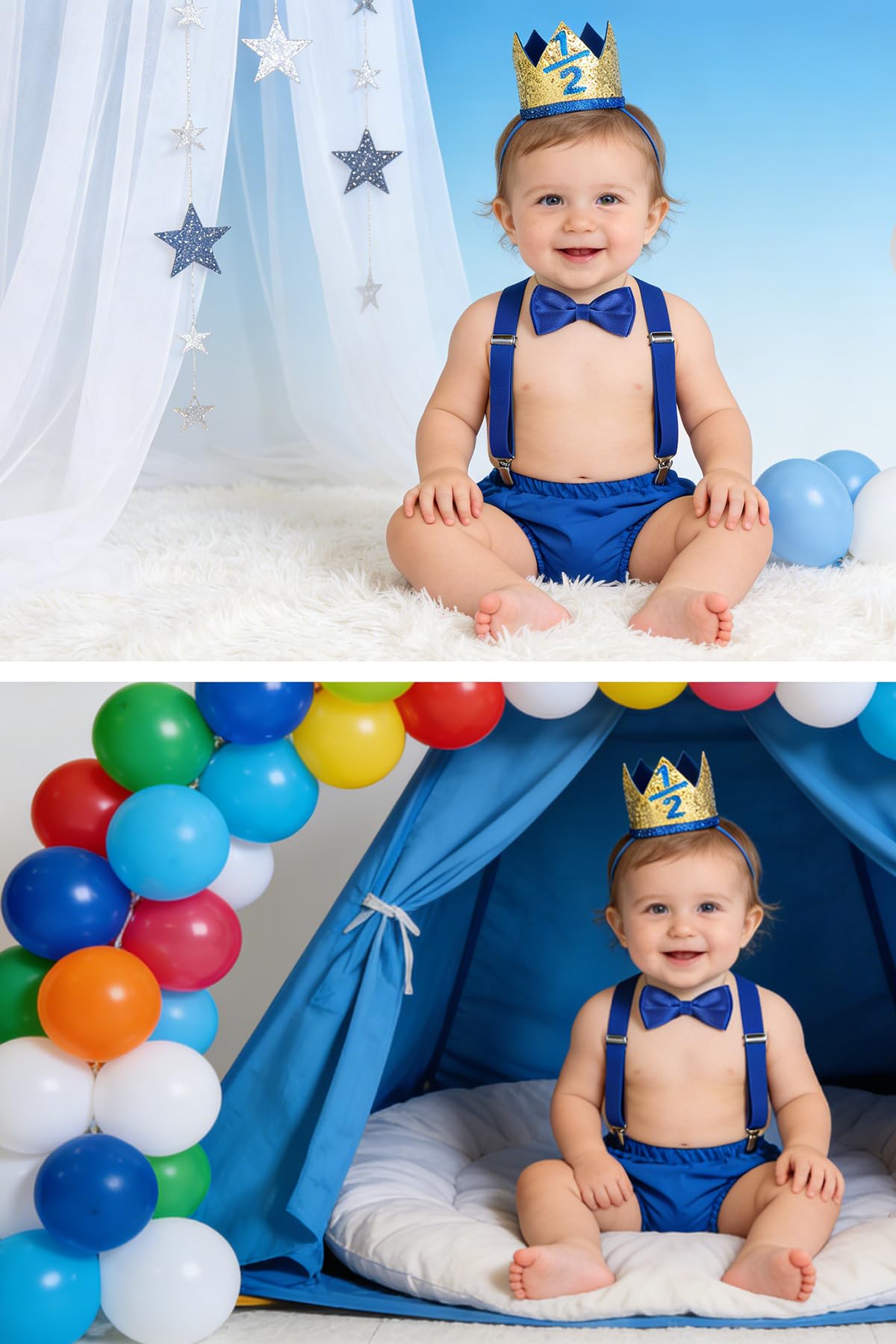 【Size】: Cake pants:waist: 16.1-21.6"/41-55cm, length (waist to crotch): 7.87"/20cm. Suspenders:max length: 25.0"/63.5cm. Bowtie: the 2 * 4'',circumference: 12-17.7"/30-45cm. Crown: 7 x 8CM, 2.7" x 3.1"