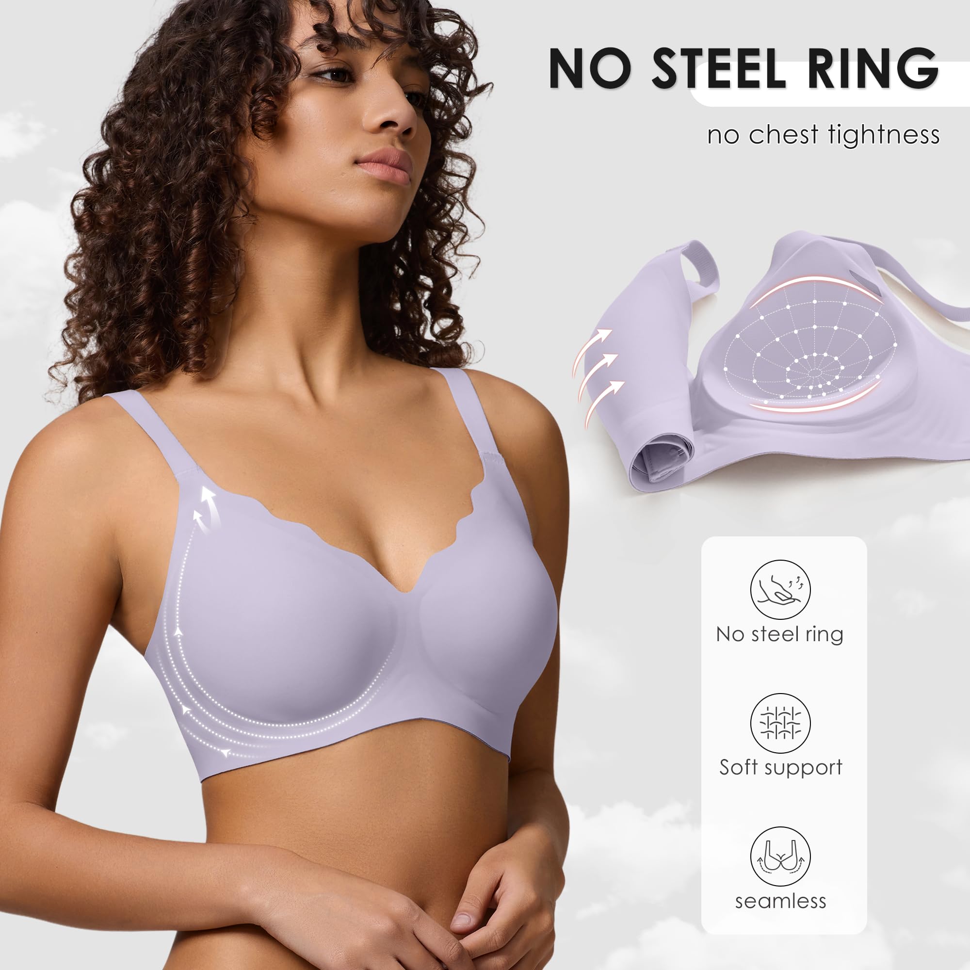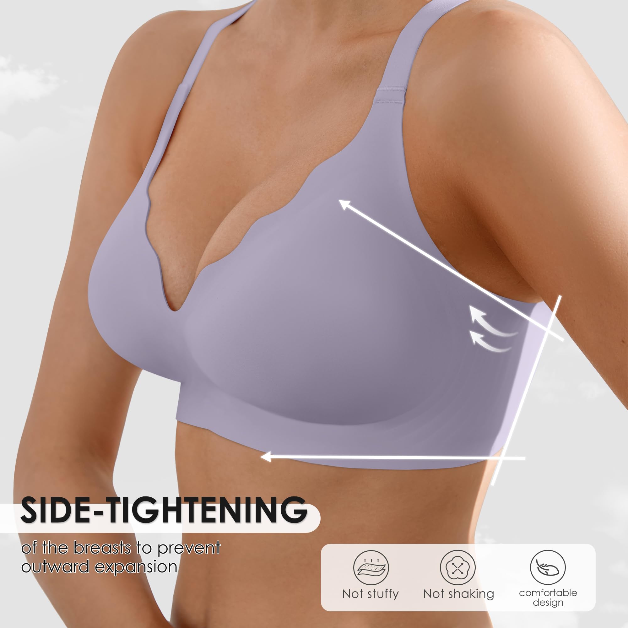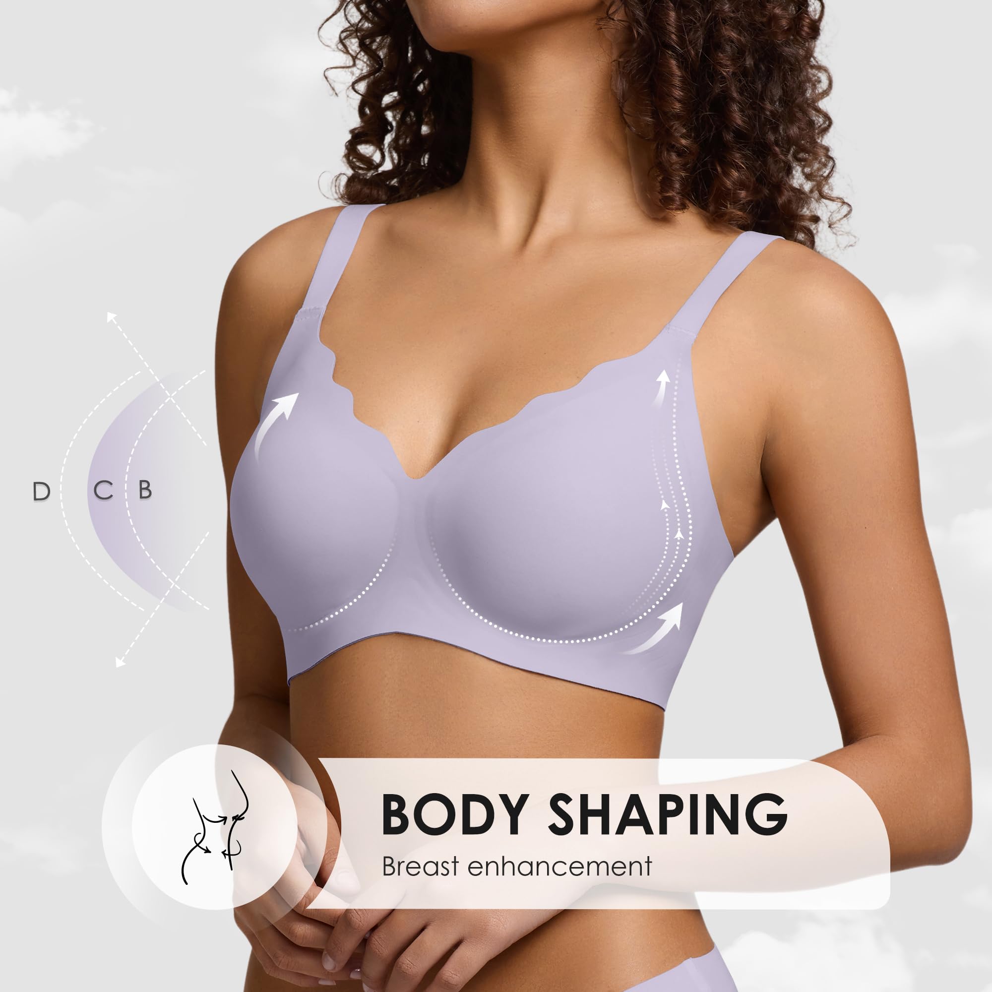 Innovative "W" jelly strip design: The unique "W" jelly strip design without underwire provides 360° full supportive and cover, gently lifting the breasts and bringing a natural and busty lifting effect to the breasts. This bra is designed to take into account both comfortable and shaping, allowing you to enjoy a cloud like soft feel all day long.