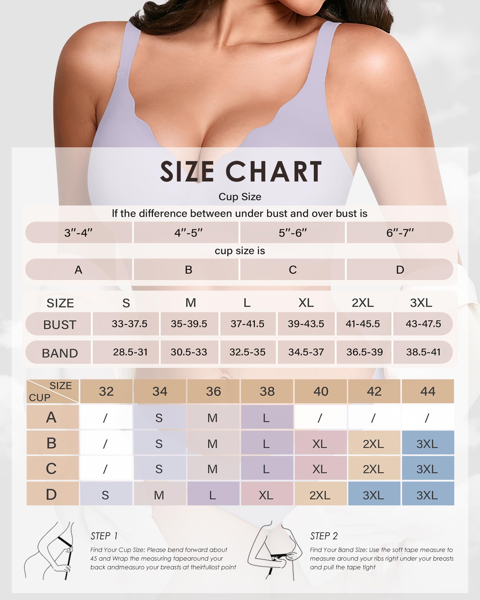 Multiple size for easy selection: Provides comprehensive size selection from small to medium and large, covering a variety of breast shapes and body needs. Suitable for different women from sizes from 32b to 40c and various plus sizes, whether young girl or mature woman, can find the right size to ensure a comfortable fit.