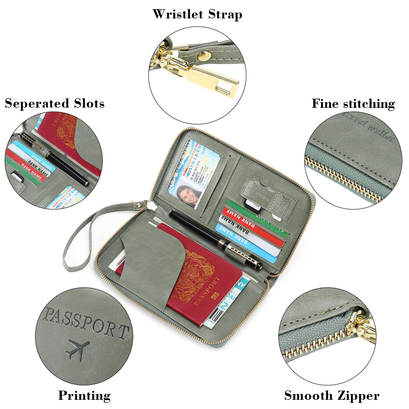 High Quality Material: The clutch passport wallet is made of high quality pu leather,with soft texture and exquisite workmanship. Designed with shiny golden hardware,heavy duty zipper and quanlity fabric Lining