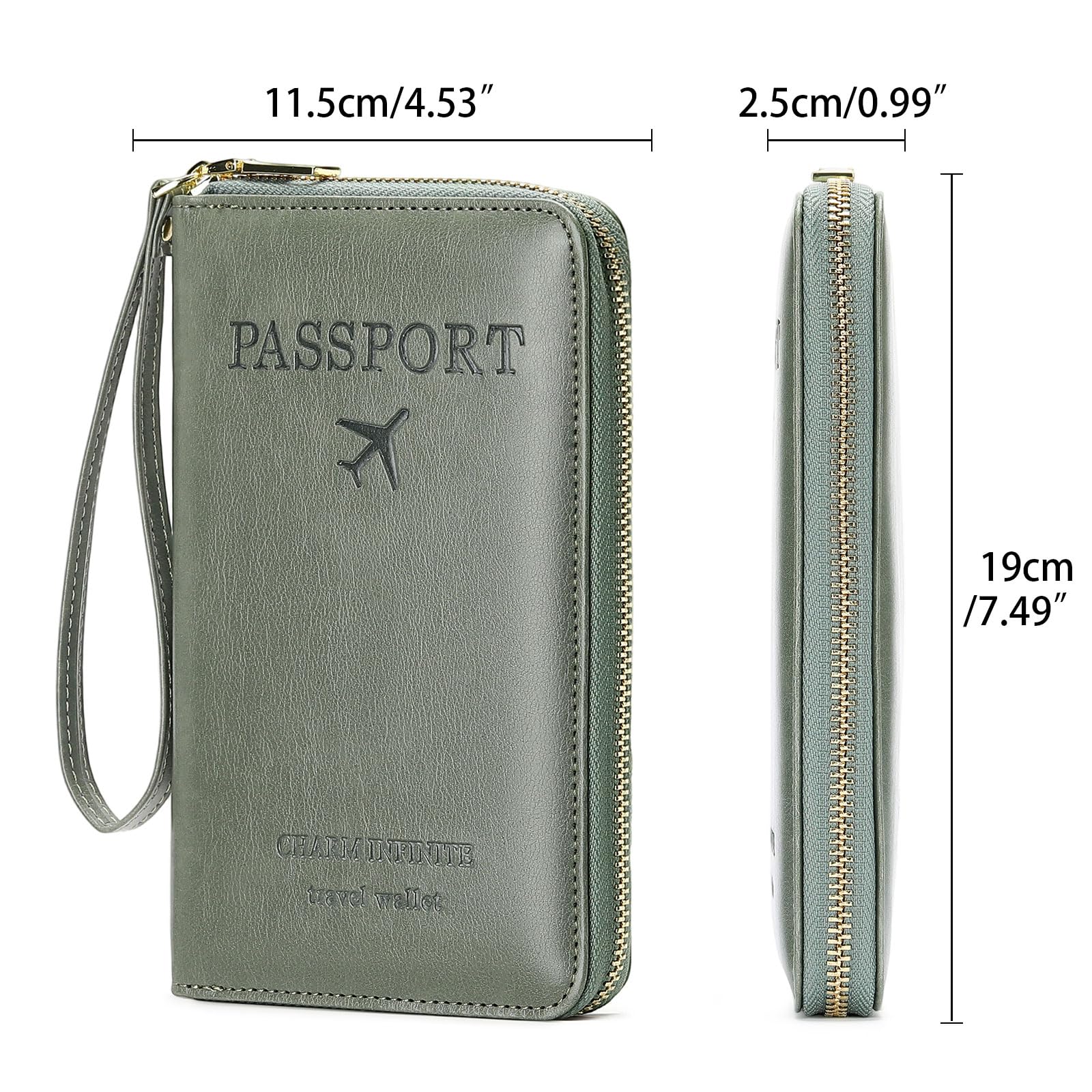 Compact Size: The size of passport holder women men is 7.49"L x 4.53"W x 0.99"H inches. The passport wallets are designed with stringent measurements to make sure they will fit your documents precisely. The rfid passport protector will hold any standard size passport book. The ultra-slim design allows our passport card holder and vax card holder to fit comfortably in your pocket, purse or handbag and is lightweight and easy to carry