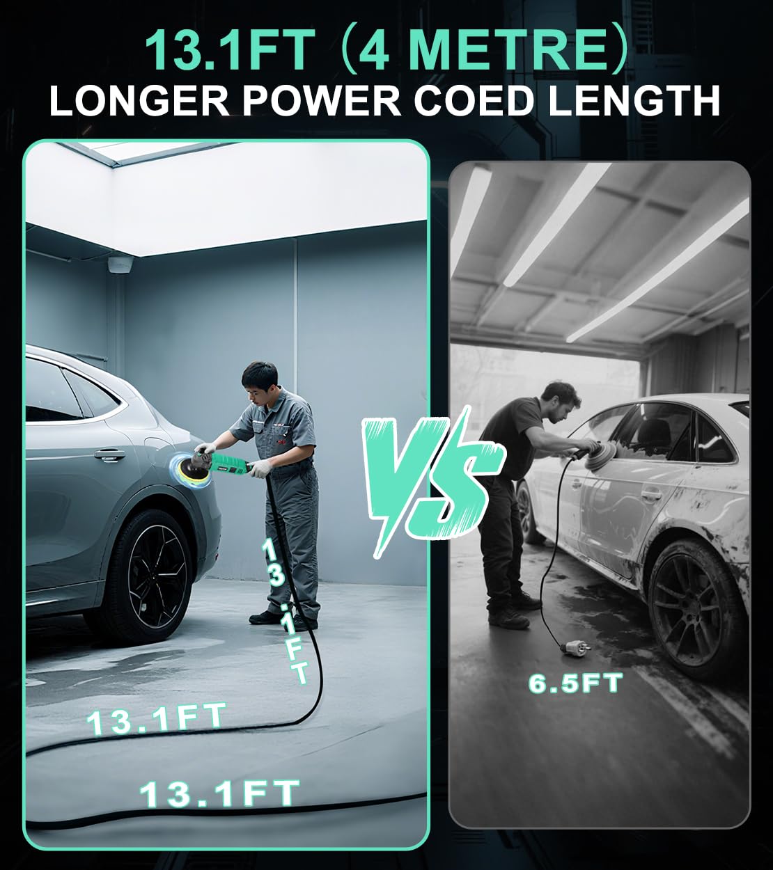 ใ๐๐ฉ๐ ๐ซ๐๐๐ ๐๐.๐๐๐ญ ๐๐จ๐ฐ๐๐ซ ๐๐จ๐ซ๐ใOur dual action polisher took the advice of our buyers and upgraded the power cord from 6.56ft to 13.1ft to meet the needs of long distance polishing, making the polishing process more relaxed,comfortable, efficient and safe.