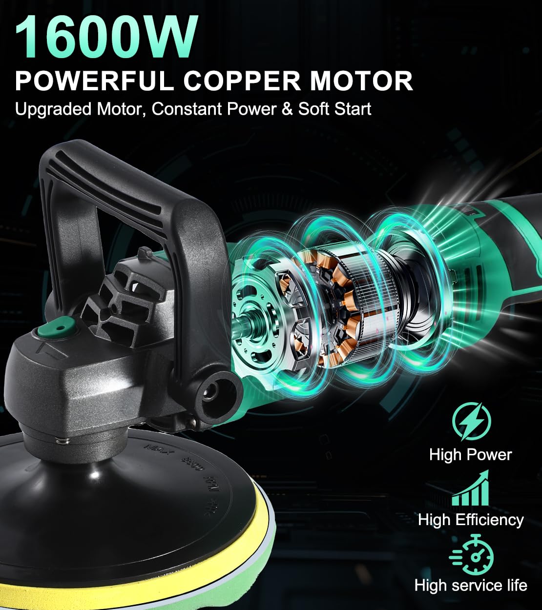 ใ๐๐๐๐๐ ๐๐จ๐ฐ๐๐ซ๐๐ฎ๐ฅ ๐๐จ๐ญ๐จ๐ซใZOTA car buffer polisher is equipped with a high-performance 1600W motor,which provides you with unparalleled power support,whether it is oxidation layer,scratches or stains on the surface of the body,or restoring the body shine. The car polisher is equipped with a full copper wire motor, which has a long service life, ensuring efficient and durable operation.