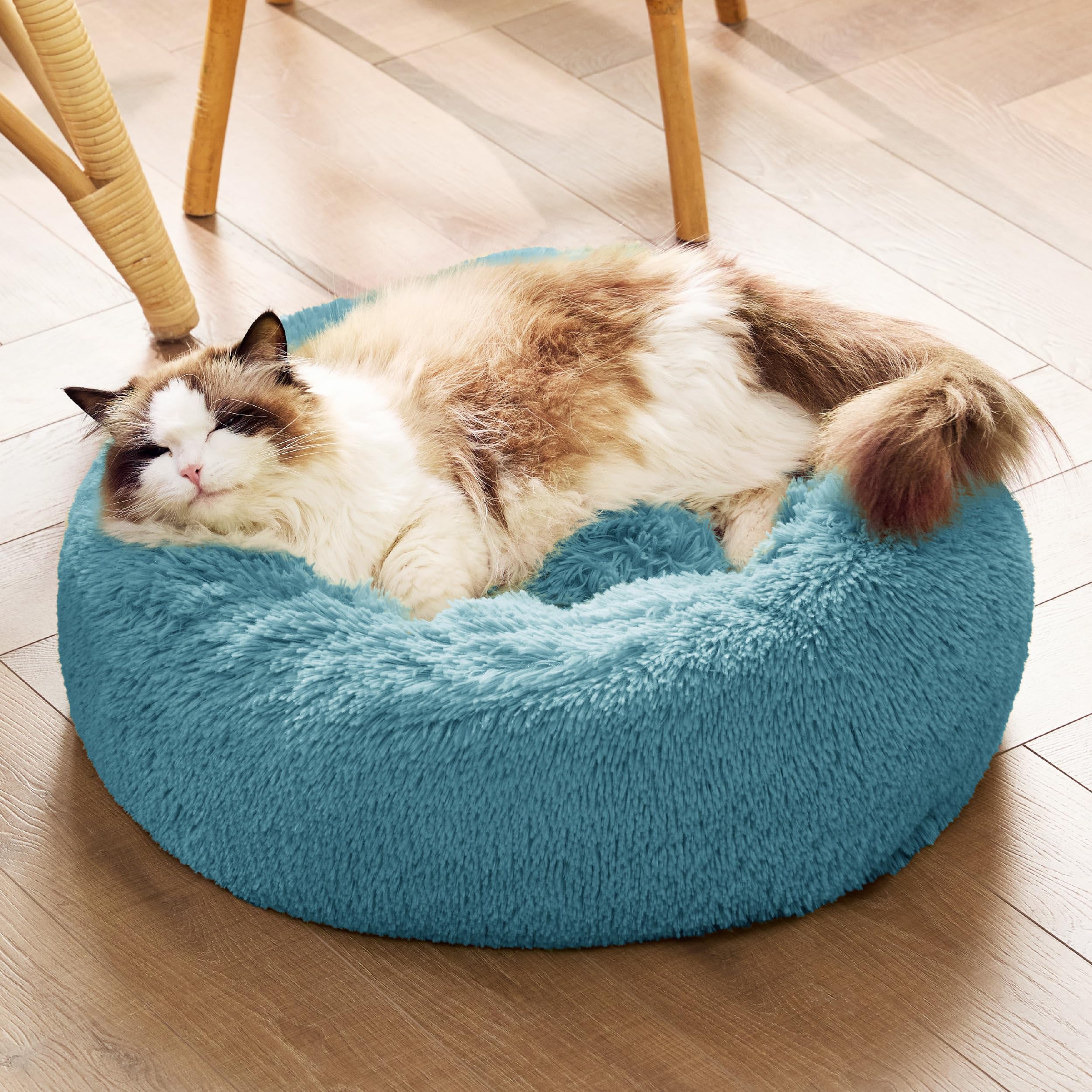 Oprah Daily Award-Winning Comfort:Recognized by Oprah Daily as the perfect donut dog bed for curl-up sleepers, this round calming pet bed is loved for its extra-fluffy faux fur, raised rim for furry heads, and cozy design that blends seamlessly into any home. Petite sizes (XS–M) are fully machine washable for added ease.
