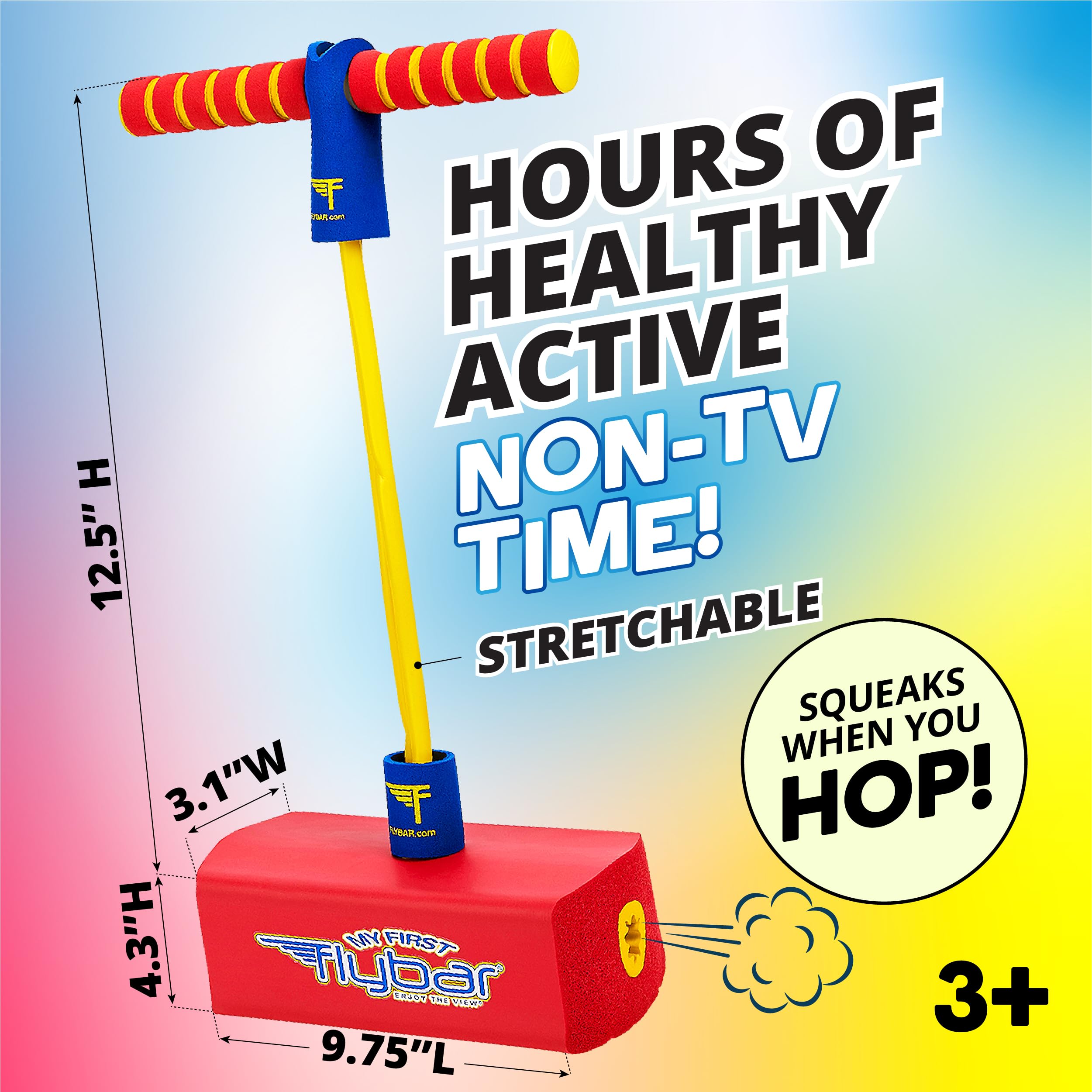 Boing, boing, squeak! The My First Flybar foam pogo stick is hours of healthy, bouncy fun. Crafted from durable foam, this is an ideal first pogo stick for kids; each jump makes a fun squeaky sound