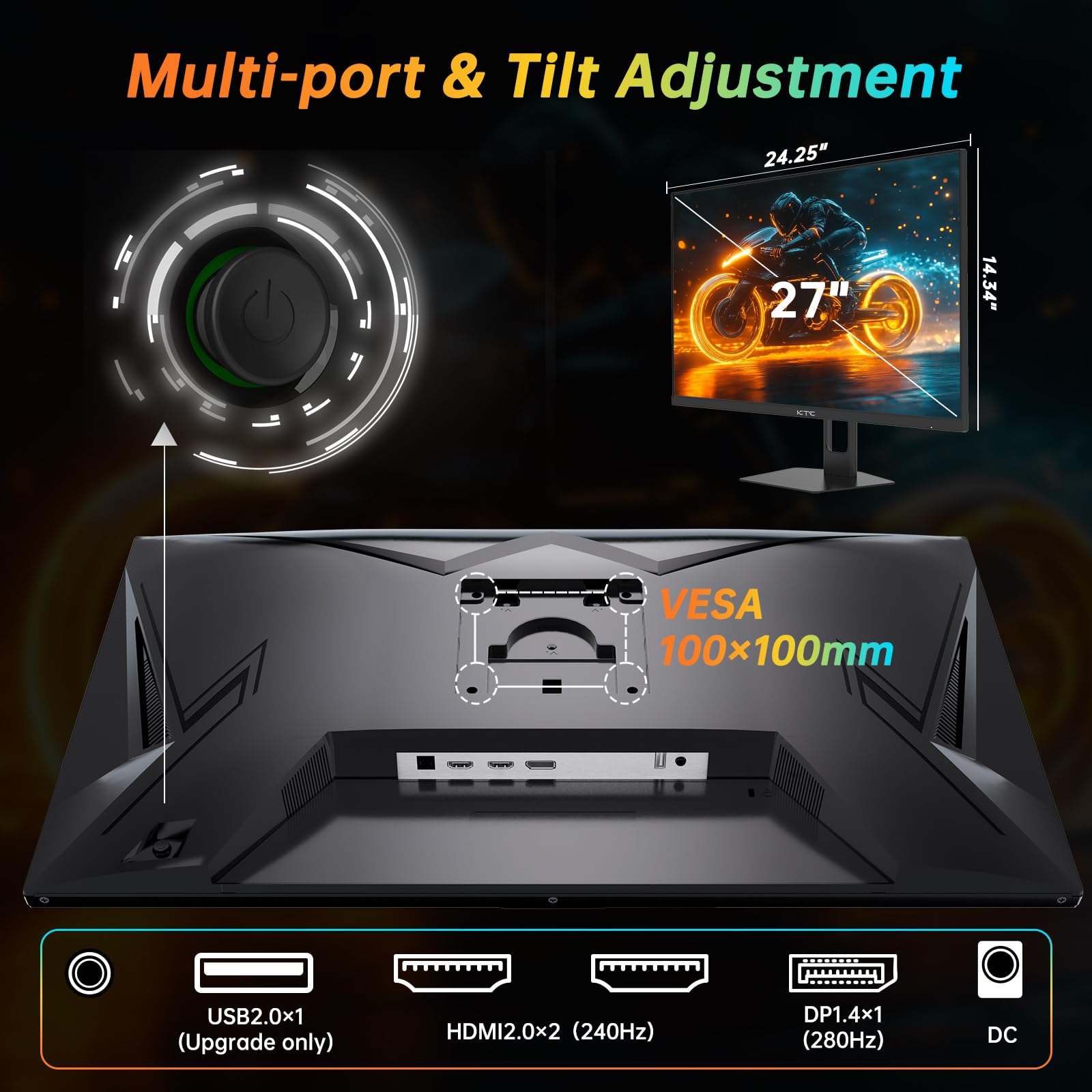 Versatile Connectivity: Includes 2×HDMI 2.0 (240Hz) and 1×DP 1.4 (280Hz) inputs for easy device connection. You can connect the monitor to Xbox, PC and laptop, easily switching between work and entertainment.