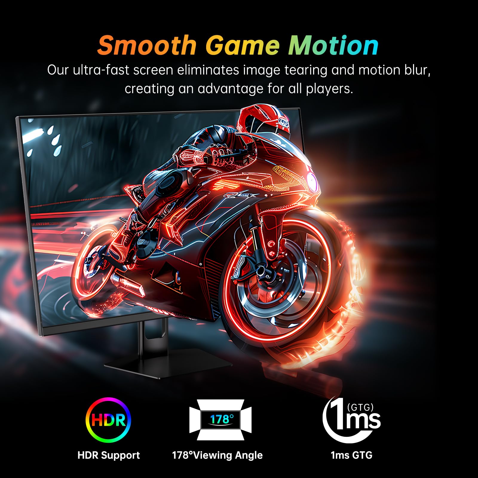 Excellent Color Accuracy: 8-bit color depth, wide 1.07 billion color gamut, 126% sRGB coverage and 4000:1 contrast ratio ensure vivid and accurate color performance. HDR technology allows a wider color range and greater contrast, enhancing the gaming experience.