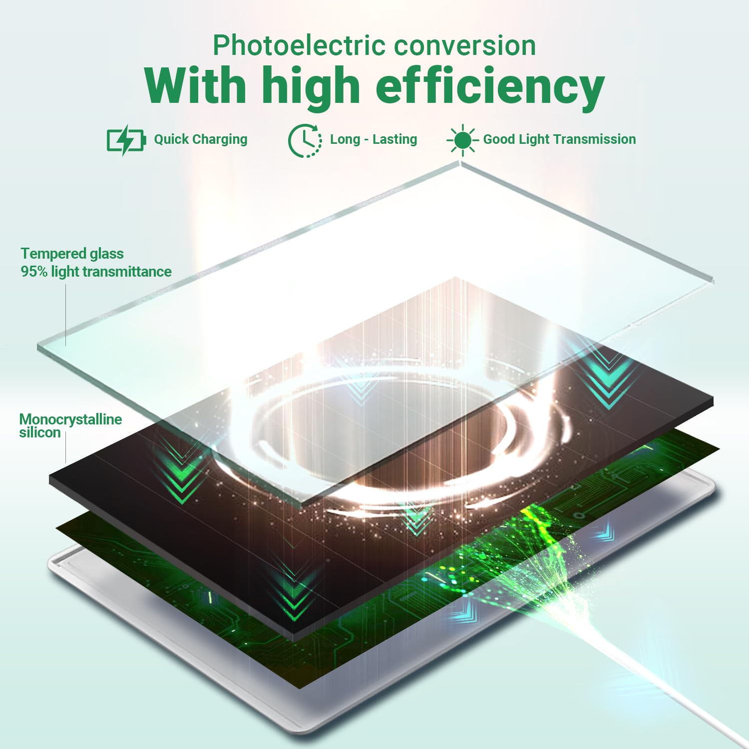 【Durable】 360° waterproof seal with high-strength silicone, tempered glass, and anti-aging PC materials ensure >90% power efficiency after 5+ years of use.