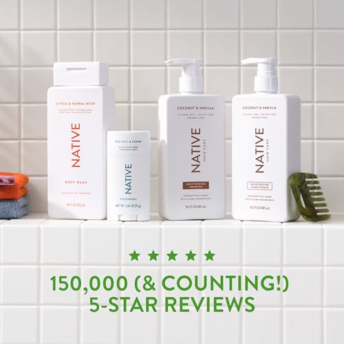 Naturally Derived Ingredients - Native shampoo and conditioner set contains naturally derived and simple ingredients. Made with just 10 thoughtful ingredients that give strength to your strands such as coconut oil derived cleansers, food grade cleansing salts, and citric acid for pH balance. Free of silicone, sulfated surfactants, paraben, and dyes.