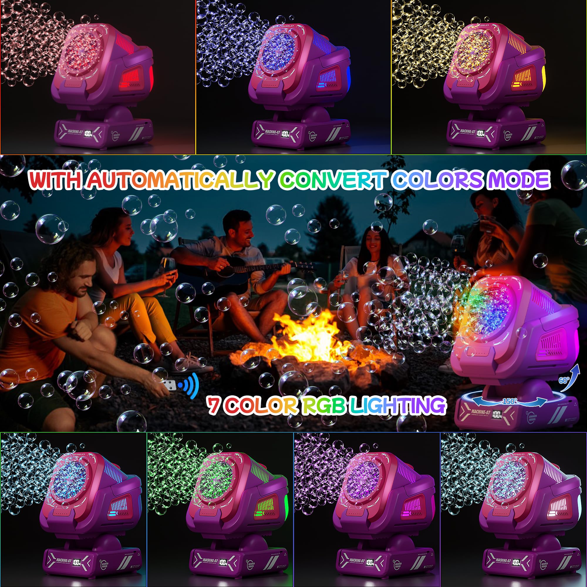 【3. Dazzling RGB Lights for Nighttime Enchantment】Transform any space into a vibrant bubble disco with the Belemar Bubble Machine's 7-color RGB lights. Choose from a spectrum of dazzling colors or let the auto-changing mode create a mesmerizing light show. Perfect for nighttime use, the RGB lights add an extra layer of magic to your bubble experience.