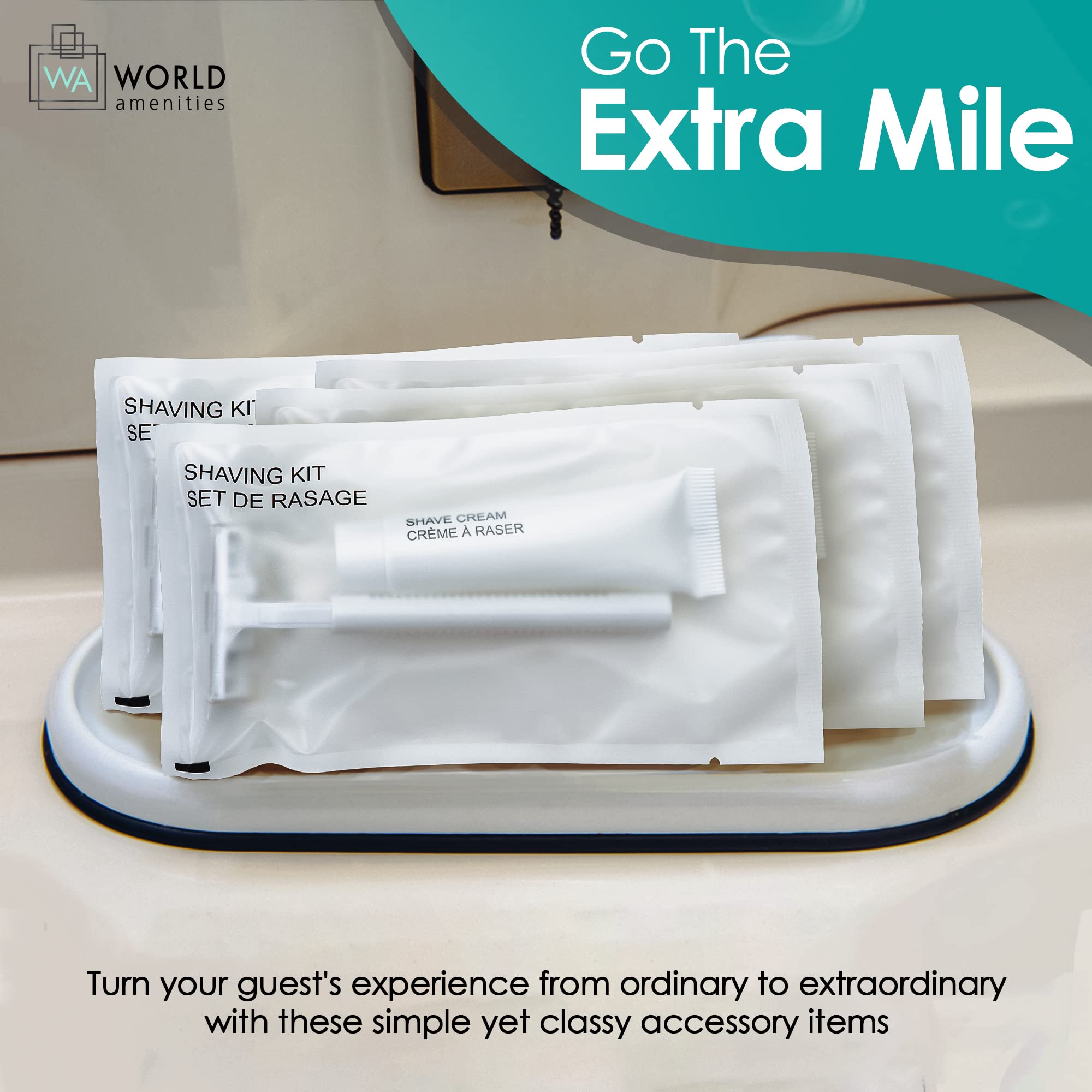 INDIVIDUALLY PACKAGED: Our shaving kits come individually packaged for hygiene, with moisturizing shaving cream (15g), includes a fixed dual bladed razor that includes a blade cover for safety during handling and storage, and are convenient for travel