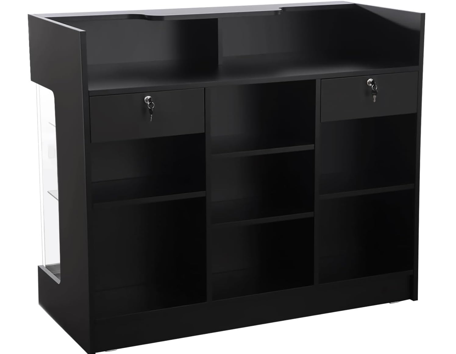 Ample Storage & Organization: Includes shelves for product display and drawers for hidden inventory or valuables.