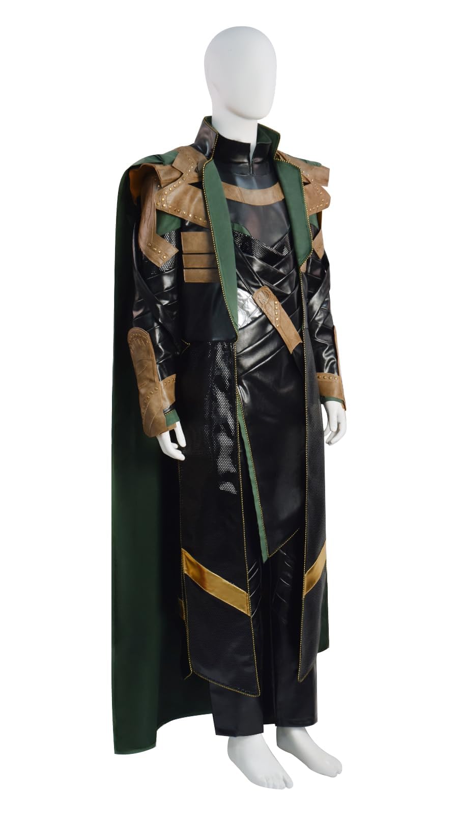Complete Outfit: Includes a long coat with intricate shoulder and chest detailing, matching pants, and a cape, providing everything you need to transform into the God of Mischief.