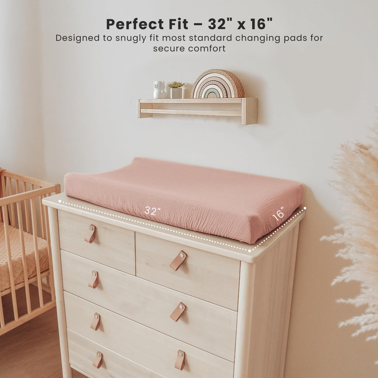 Easy to Use and Change: The muslin changing table pad covers are effortless to put on and take off. The elasticized edges allow for quick and convenient application, making it easy to switch between covers when needed. The muslin fabric is machine washable and easy to clean