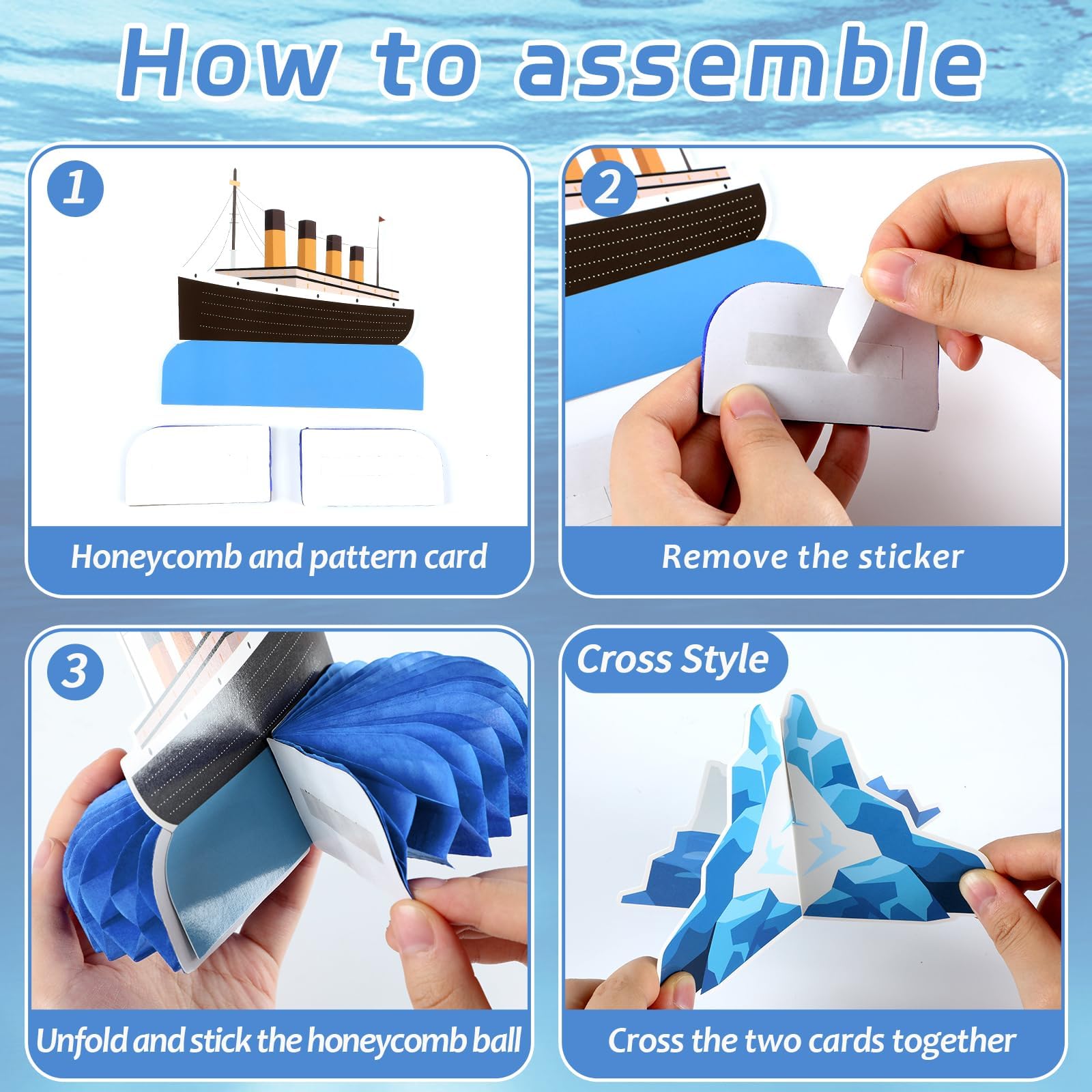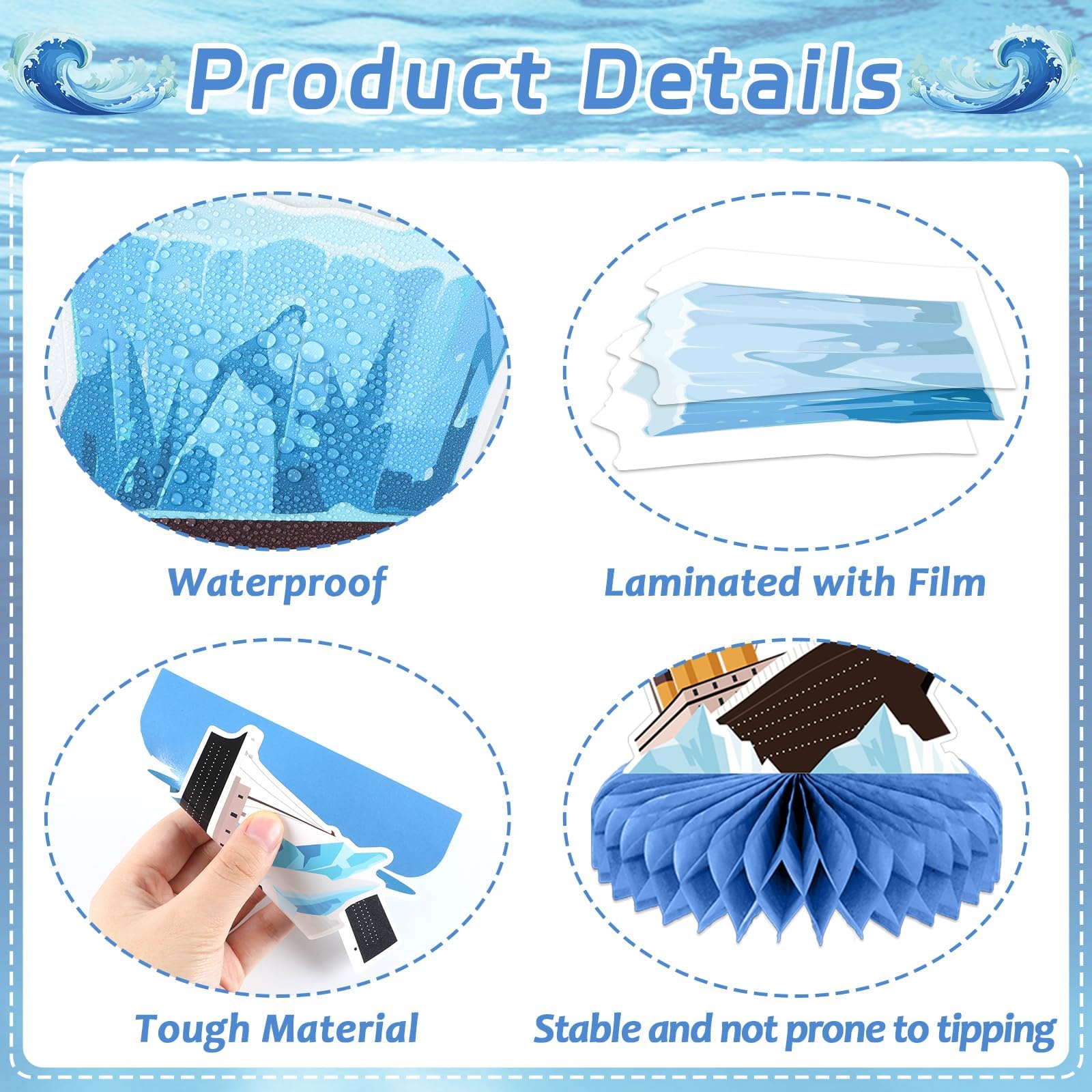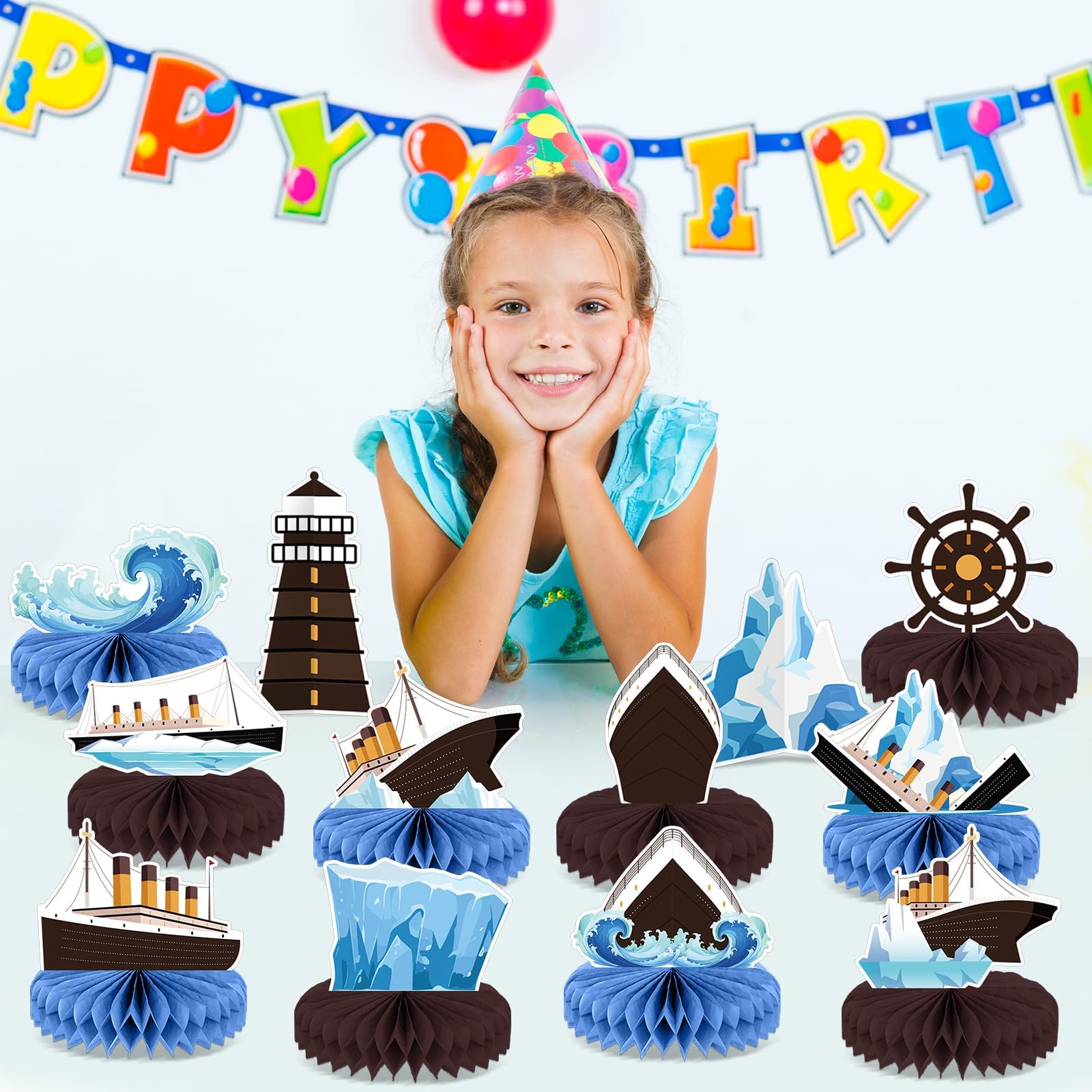 Popular for Birthday Party Decorations: Our Cruise Ship themed honeycomb centerpiece table decorations are beautifully designed, vividly interpreting the scene of a cruise ship from hitting the iceberg to gradually sinking, which is very suitable for Nautical birthday parties. These Nautical themed honeycomb decorations are eye-catching and add a touch of personality to your birthday party decorations.