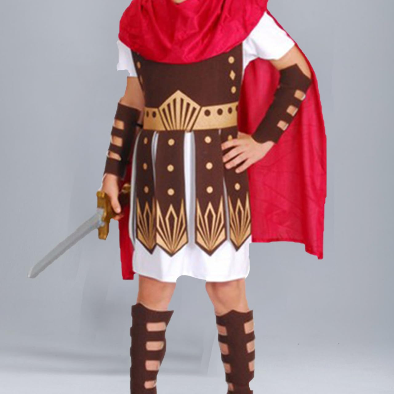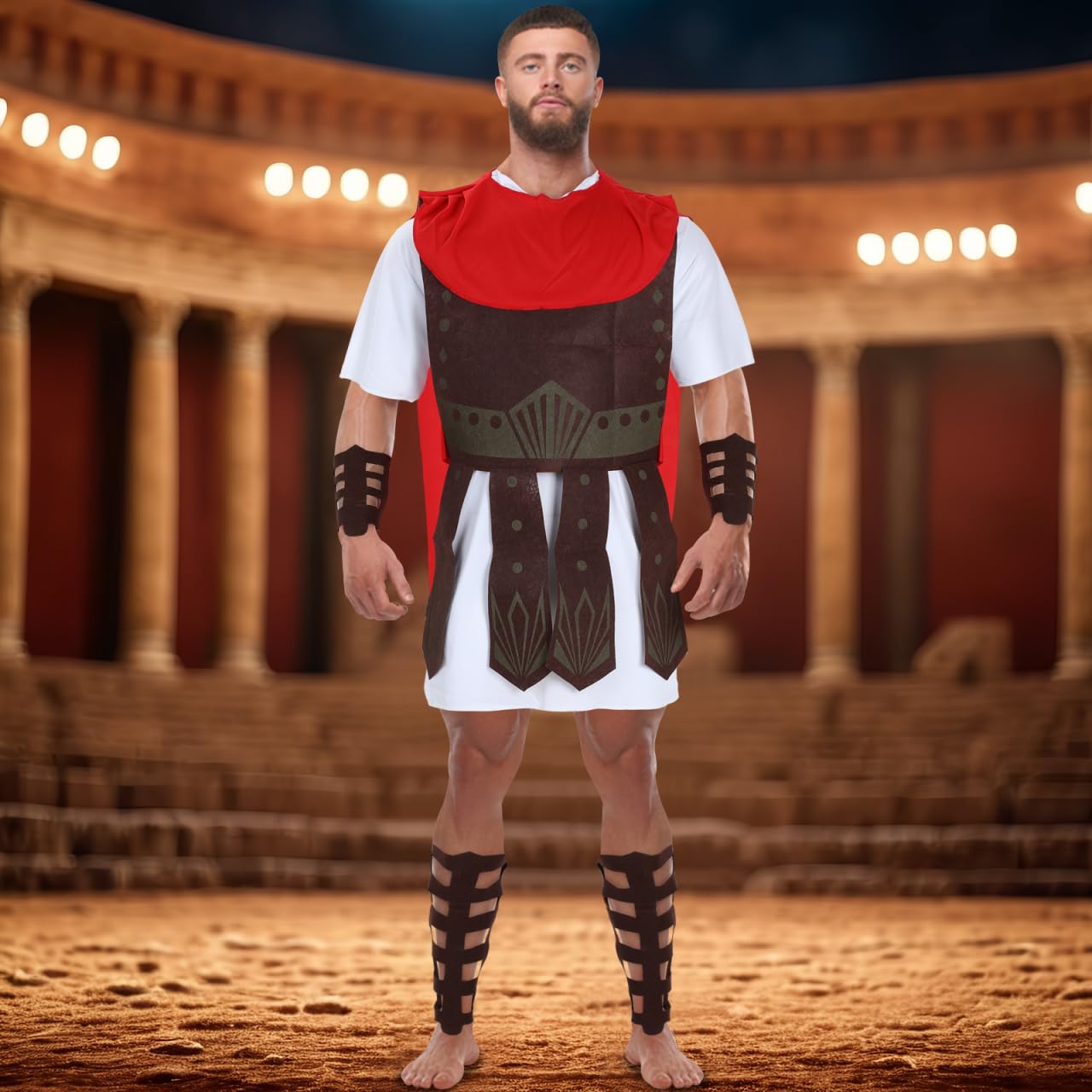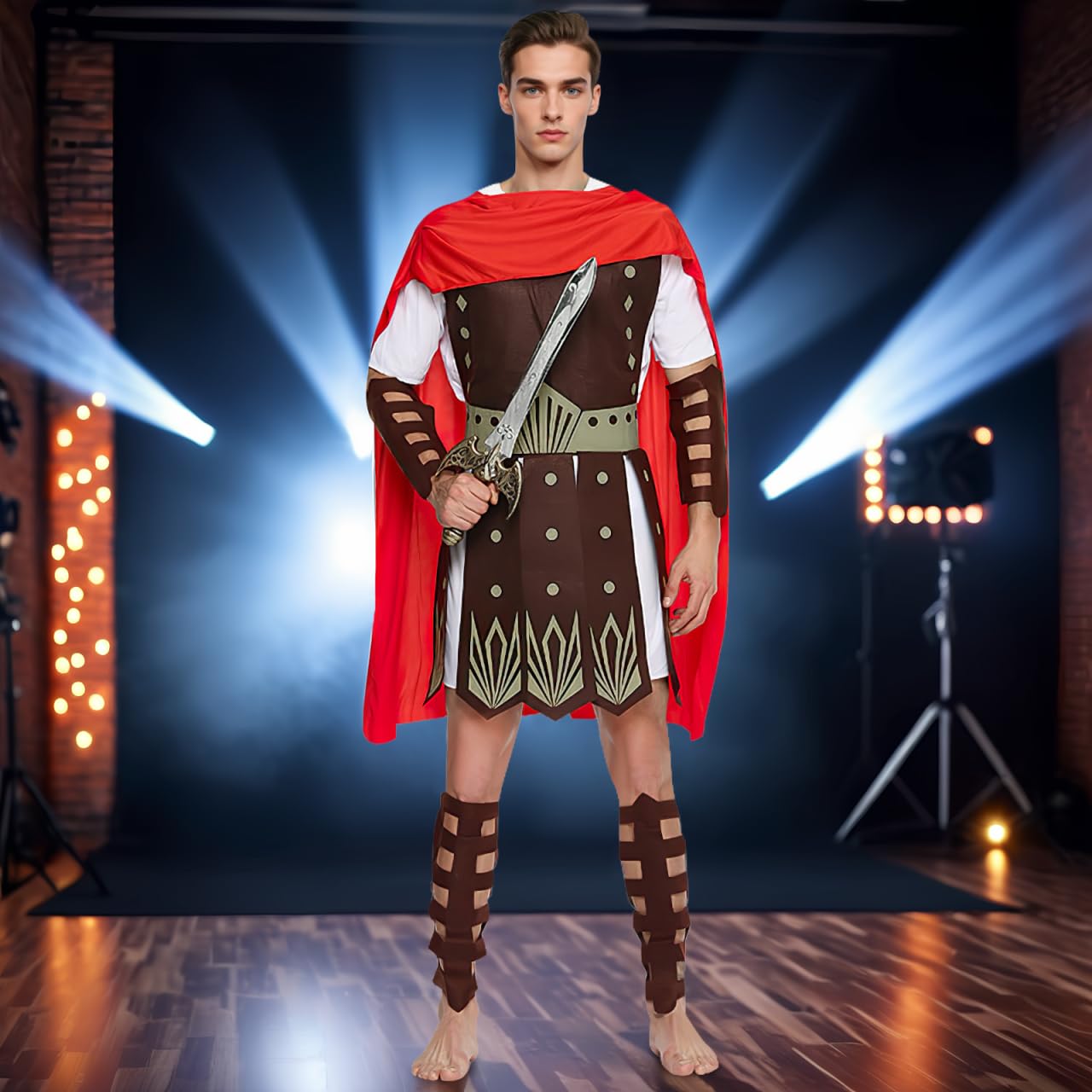 PACKAGE:This is a set of ancient Roman gladiator clothing, including cape, brown a rmor, knee pads, wrist guards and white long skirt. This dress is suitable for Halloween parties, carnival parties, birthday parties and other occasions. It is very unique and interesting