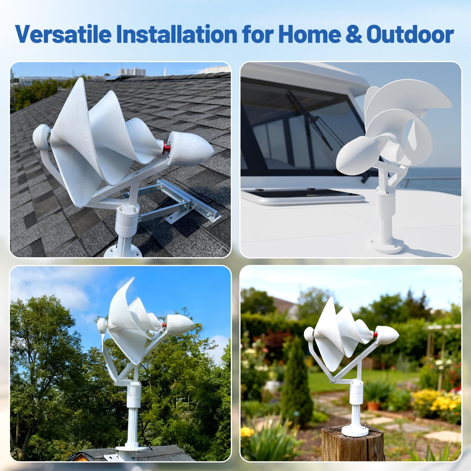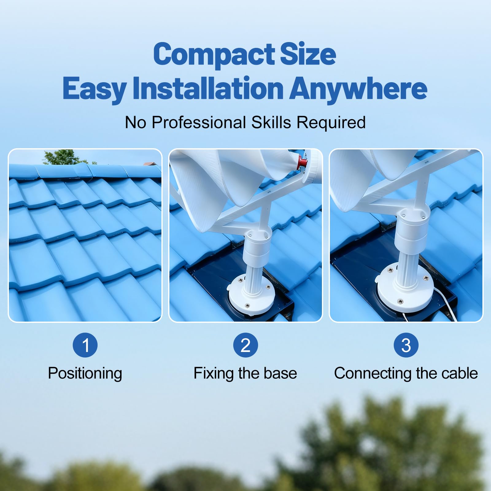【Compact Size for Versatile Installation】: With dimensions of 30cmx38cm/11.81inchx14.96inch, this wind turbine is ideal for small and easy to mount on rooftops, boats, or remote cabins