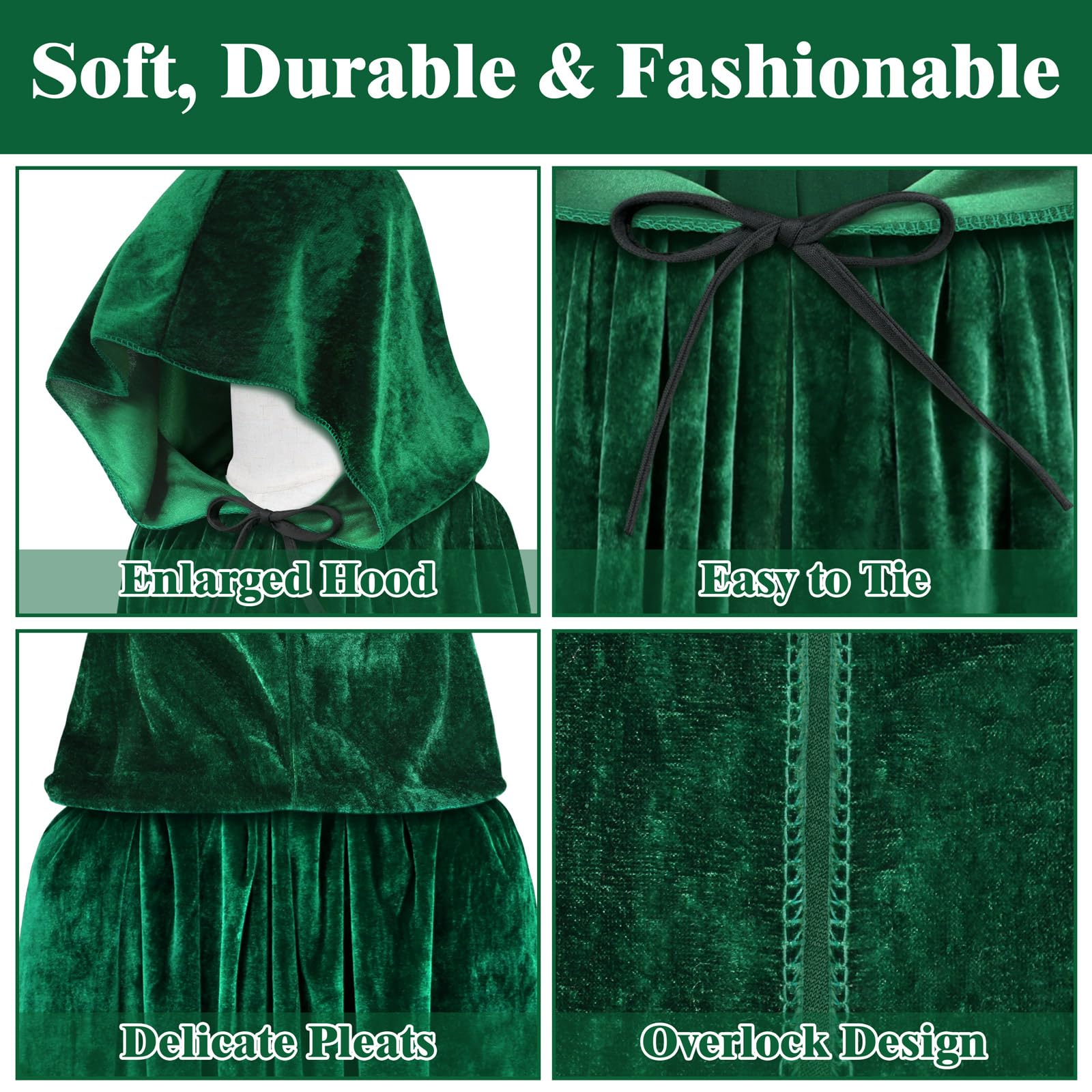 IDEAL HALLOWEEN COSTUMES: The velvet cape with hood is the perfect choice for Halloween role playing! The black hooded cape can be used as an ideal witch cloak, vampire cloak, wizard cloak and so on. And the red cloak is also suitbale for Christmas! And we also have purple cloak, green cloak, various colors are available to meet different role-playing needs.