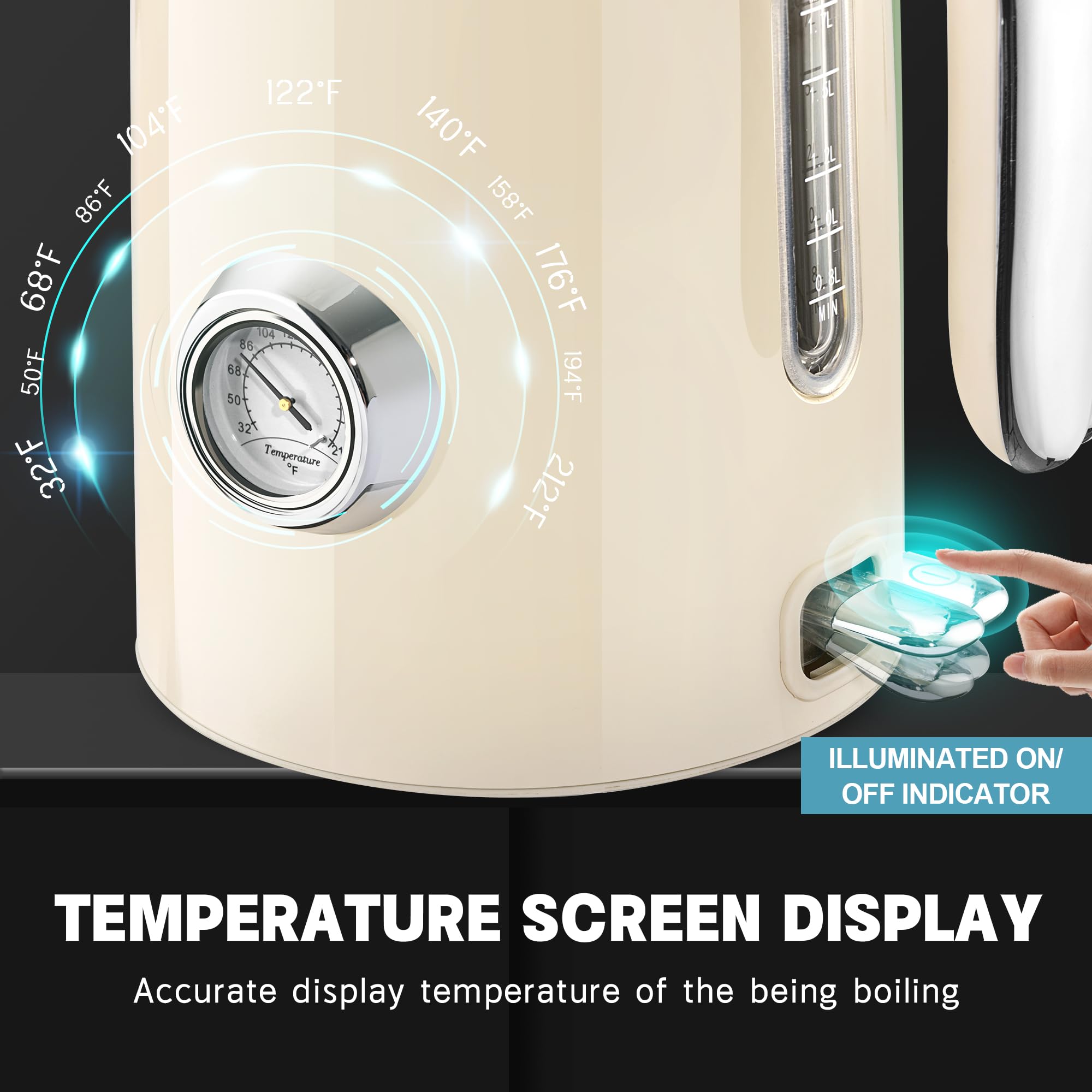 PLEASING TO THE EYE丨MAKING TEA EASILY: Incorporating a vintage aesthetic, SUSTEAS updates the stalwart electric tea kettle with modern hues and features, and the classic lines and easy-to-read thermometer offer a bit of timeless old-world style. The ergonomic heat-resistant PP handle is designed for easy, stay-cool pouring. The honeycomb filter and the V-shaped gathering spout make the pouring water concentrated, and it will not drip and wet the table top