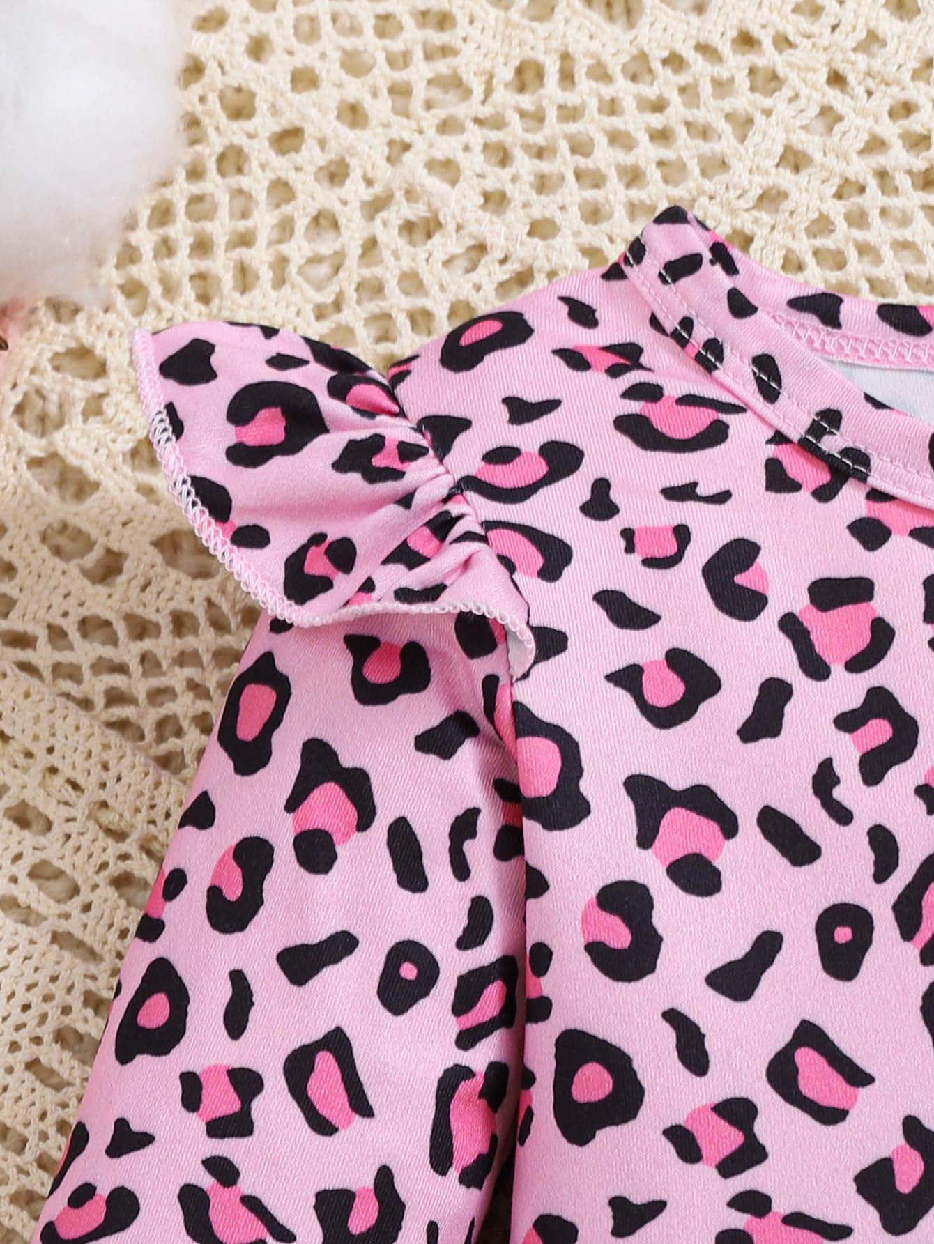 Vibrant Floral Leopard Prints & Adorable Details: Ruffled long sleeves shirt for every occasions—fashion ripped denim perfect for photoshoots, birthdays, shower,or daily charm in fall winter spring dressing up.