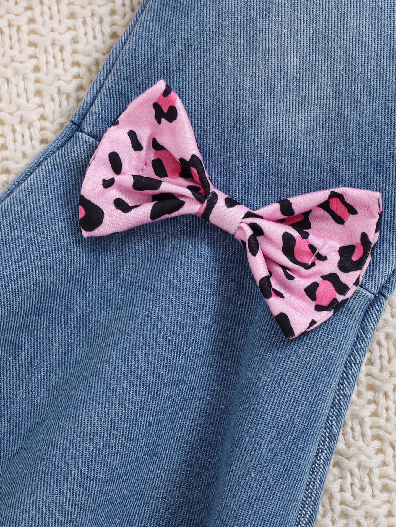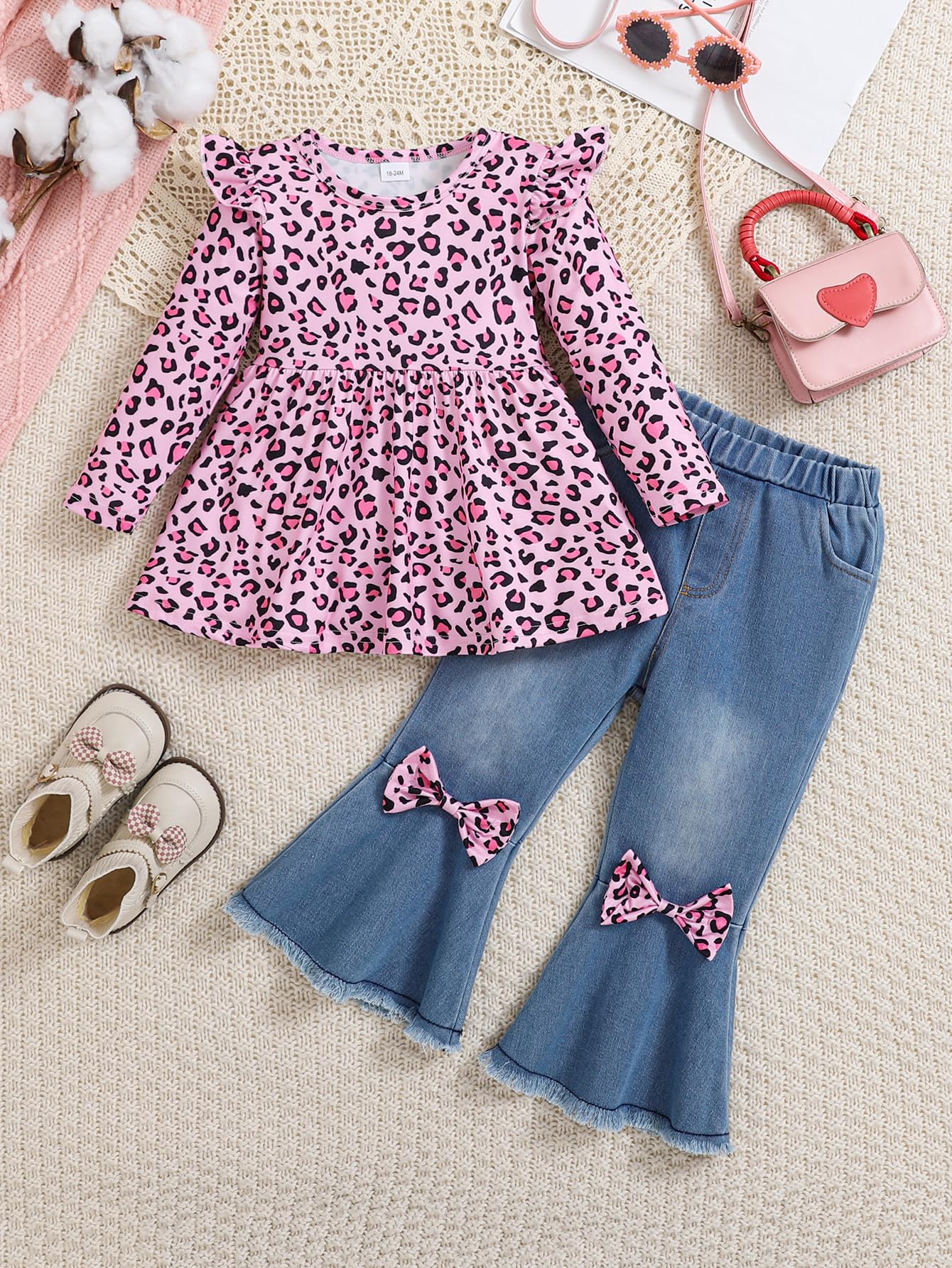 Great-Gift Set for Girl :Packed 2-piece set (ruffle shirt+ jean pants with cute bow) in packaging. Makes birthdays or holidays effortless.