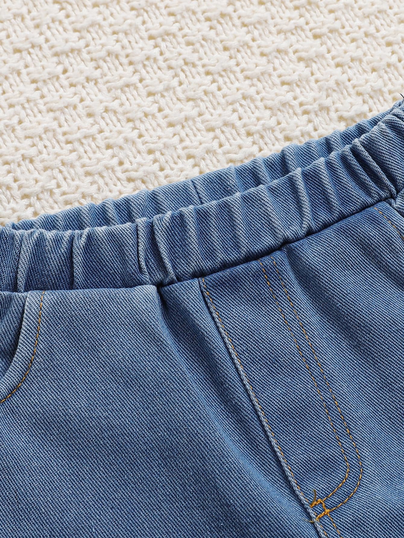 Premium Soft Cotton: Breathable cotton fabric top+fashion old shcool jeans. Ideal for baby sensitive skin, all-day comfort. Comfortable material for baby girl fall winter clothes.