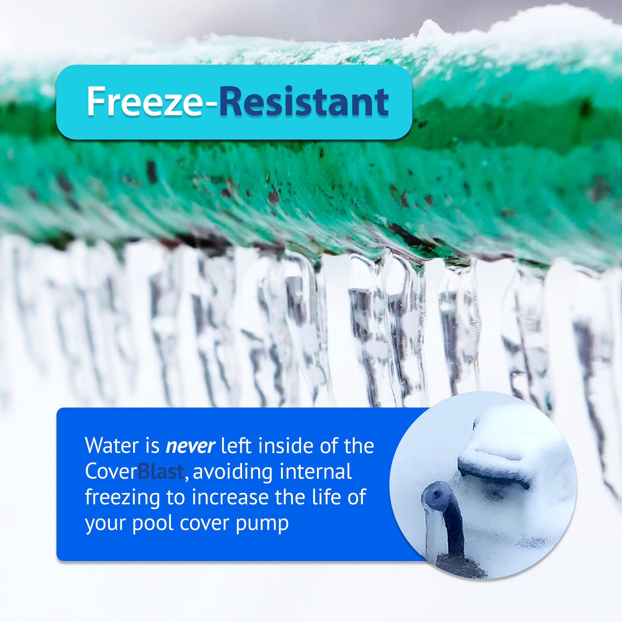 BEAT THE FREEZE WITH EASE - CoverBlast is expertly designed with a uniquely vertical 'S' shape and professional grade ABS to prevent internal water freezing, ensuring functionality in near-freezing winter conditions while extending the life of your cover pump