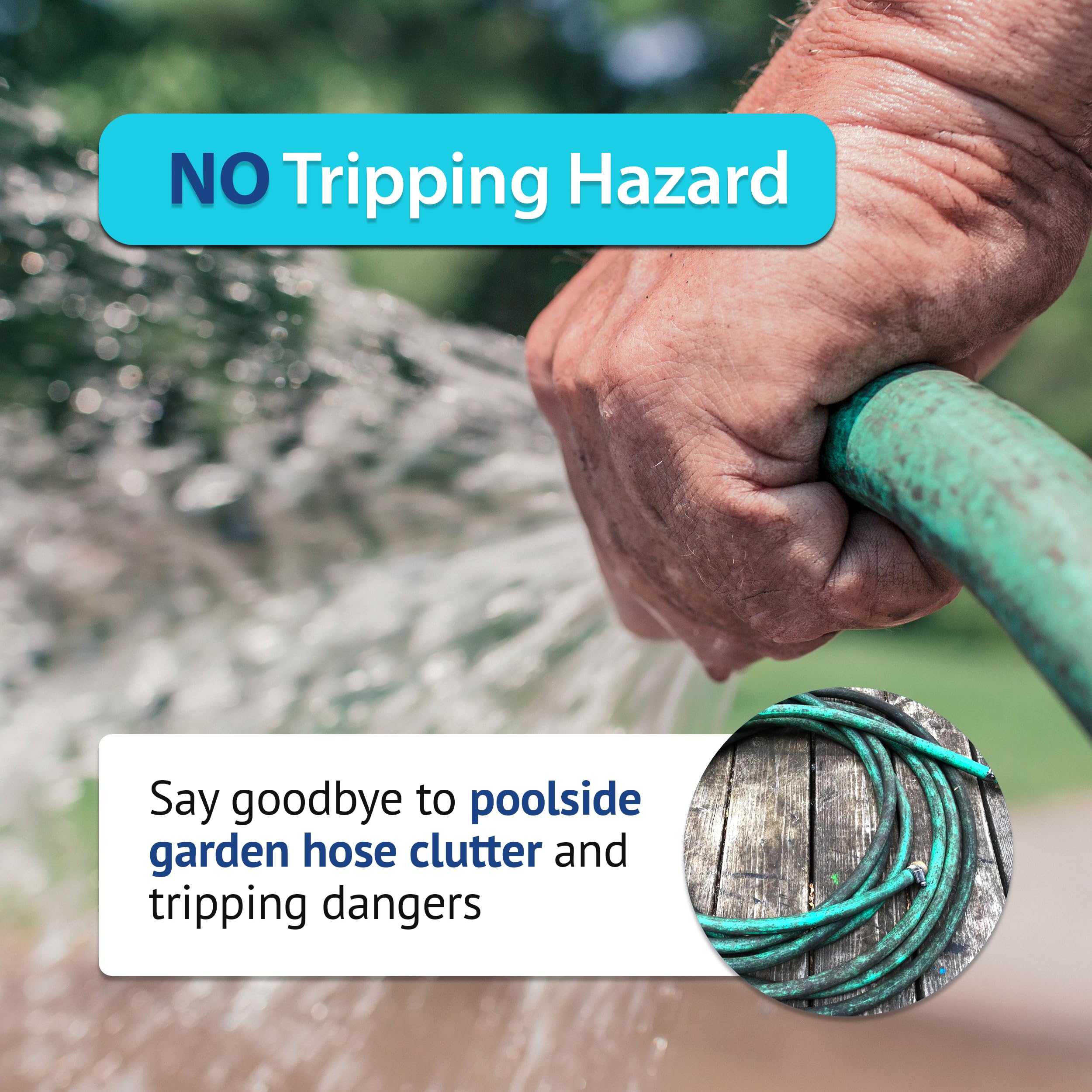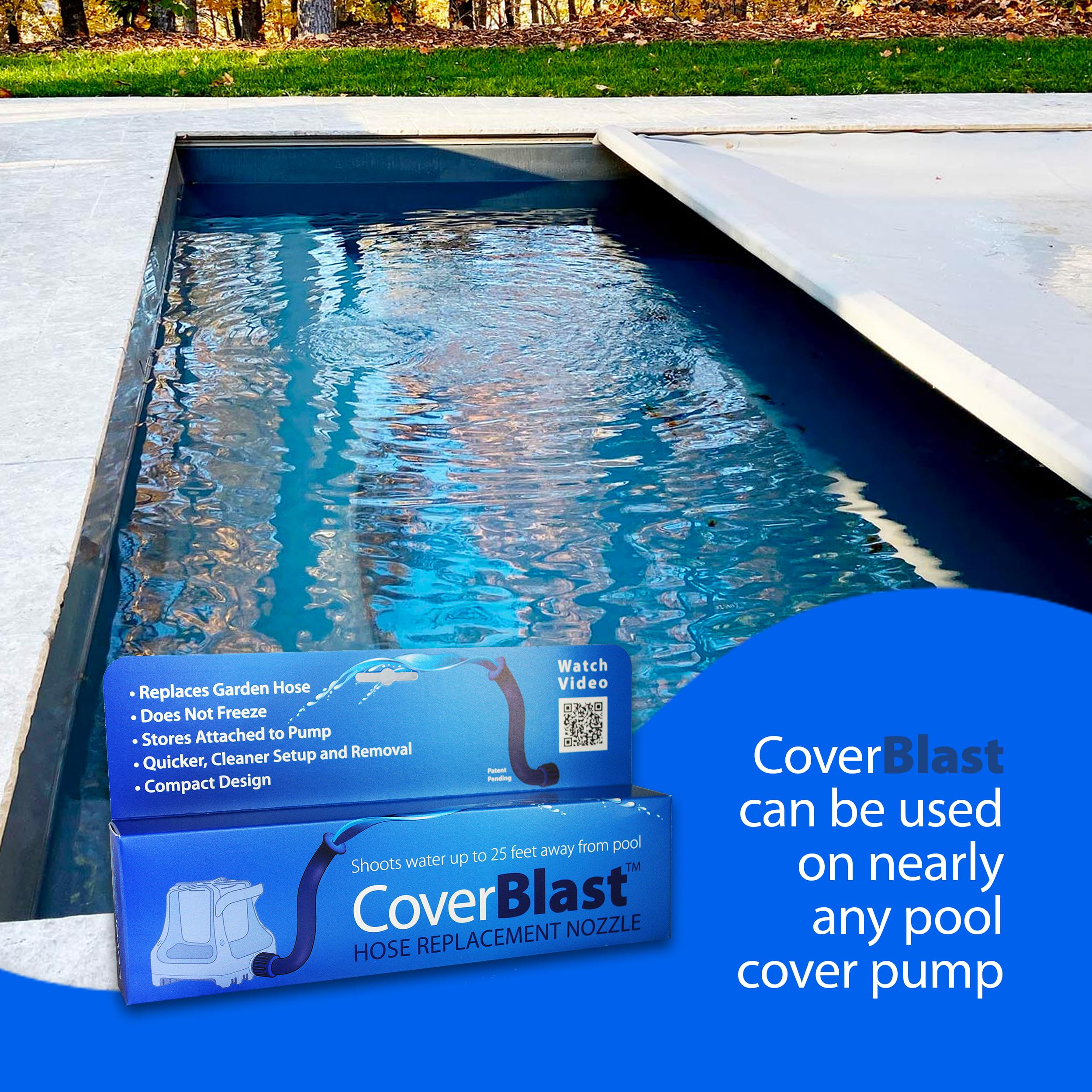 ELIMINATES POOLSIDE TRIPPING HAZARDS- With CoverBlast, say goodbye to garden hose clutter and tripping dangers around your pool. Our pool pump discharge hose replacement nozzle sprays water up to 25ft away from your pool keeping your pool cover safe and your poolside safer