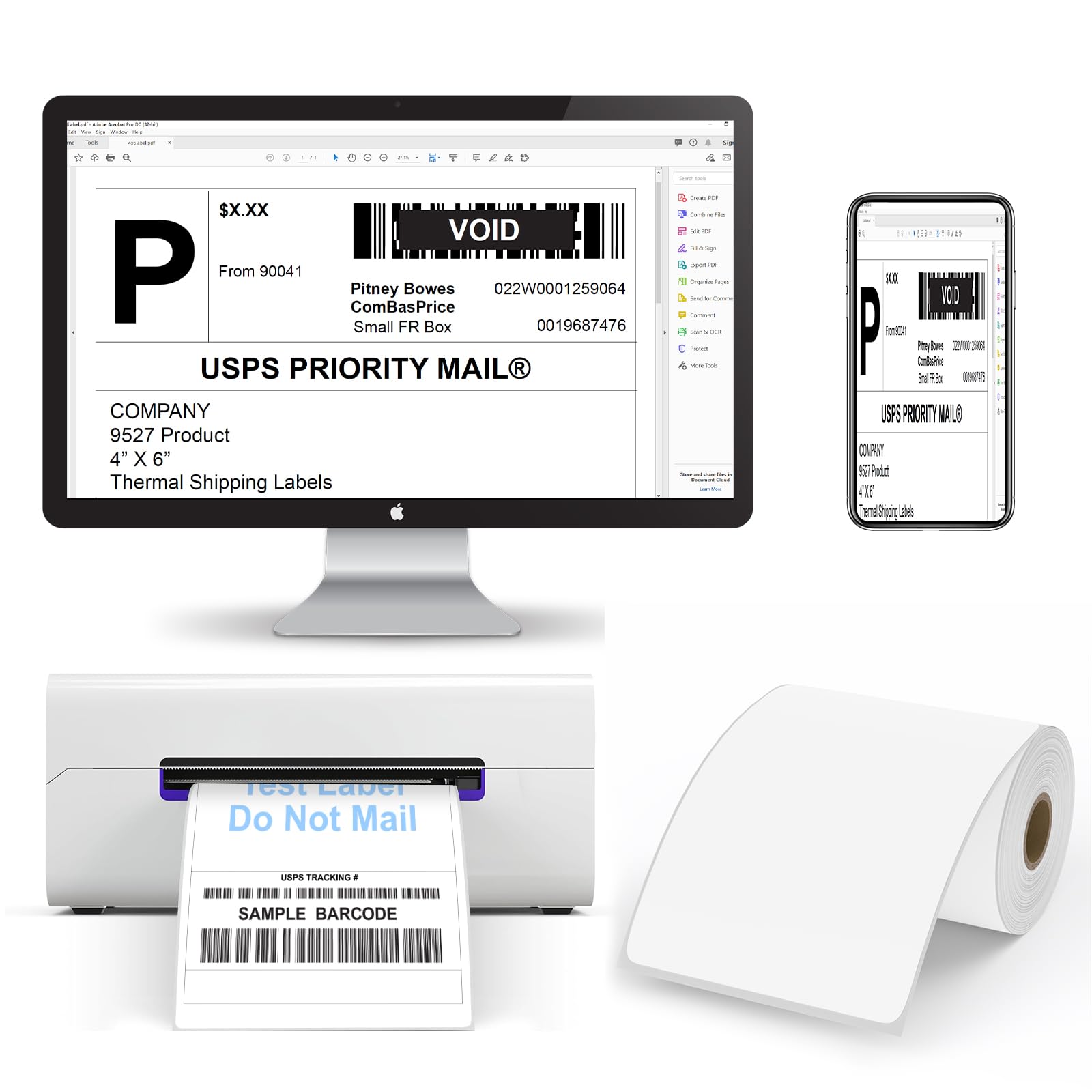 Thermal labels compatible with Zebra, Fargo, Elton, Datamax, Sato, Intermec, NEX, MFlabel, Comer,Polono Labels, iDRPT, Jiose, K Comer, LabelRange, OFFNOVA, and other direct thermal printers without the hassle of sheets waste, or jams. DO NOT compatible with DYMO printer.