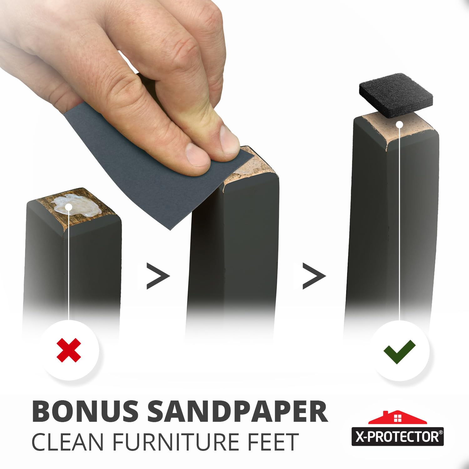 ✌️ 2 FREE SANDPAPERS IN EACH SET - Furniture leg protectors set includes 2 sheets of sandpaper to clean furniture feet from old glue. Just clean & stick our floor pads for furniture and enjoy your perfect floor!