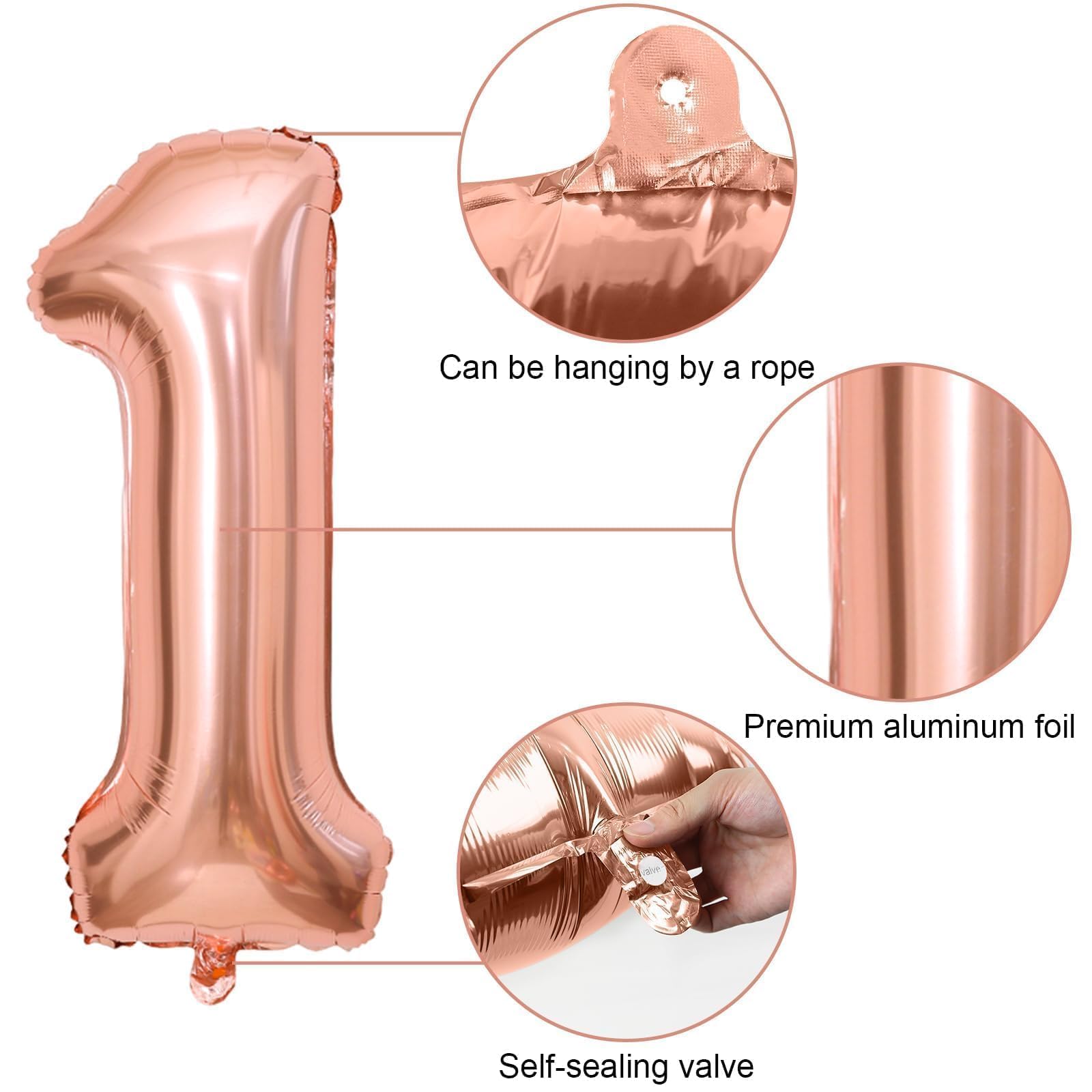 Easy to Use - Rose gold one year old birthday balloons can be blown up with air or helium! The party balloons are extremely easy to inflate and string up. The number 1 foil balloons have self-sealing valve does not need to be knotted, Balloons filled with air will last a long time, very easy to assemble. Use an air pump to help you fix the shape of the balloon, saving time and having fun! You can use a straw to slowly deflate the white number balloons and fold them neatly for next time use.