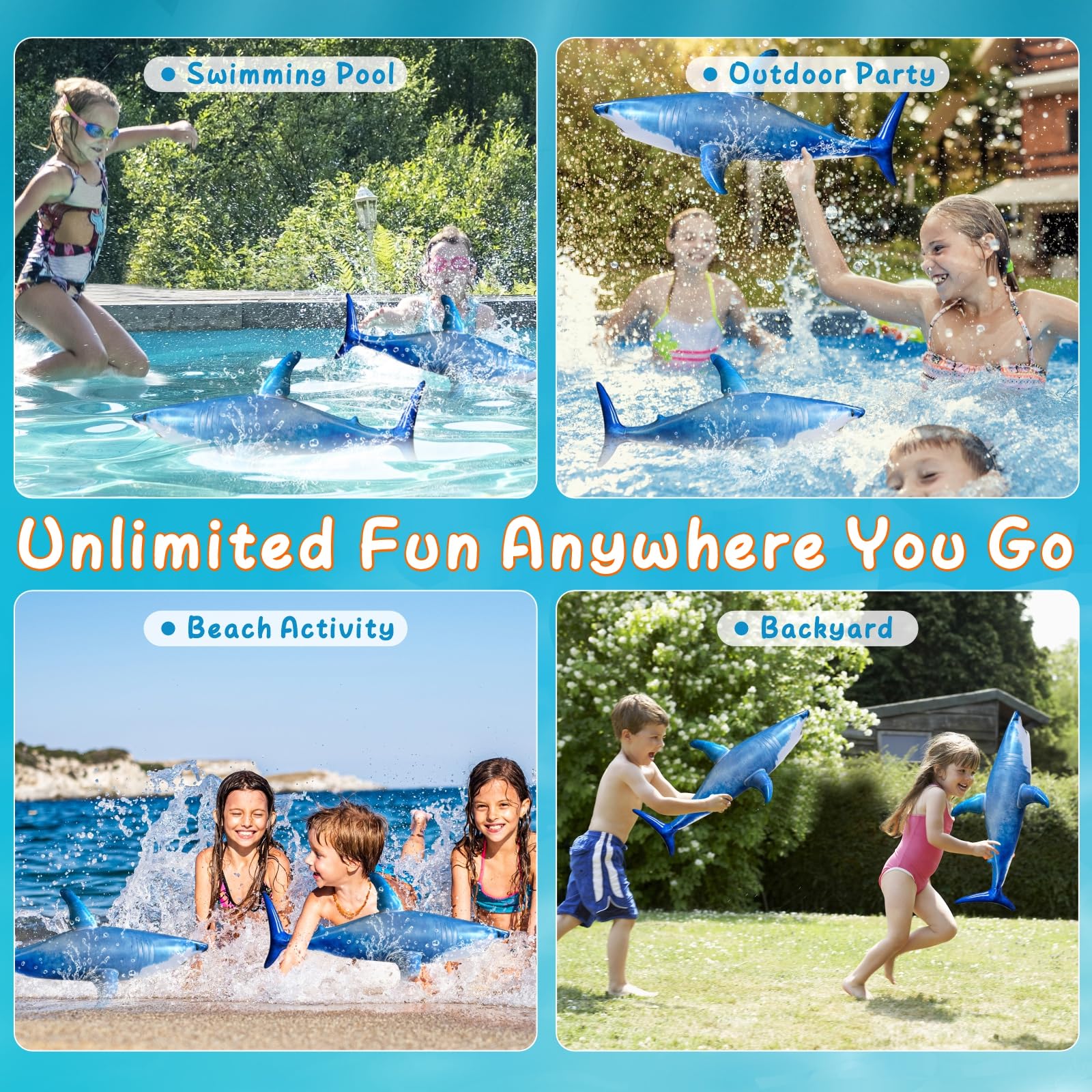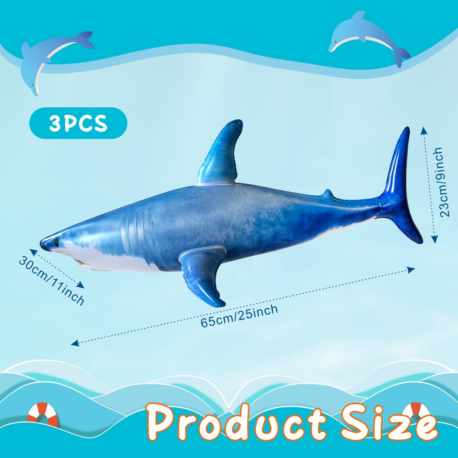 PACK OF 3 SHARK: Each order contains 3 cute 23in inflatable sharks.