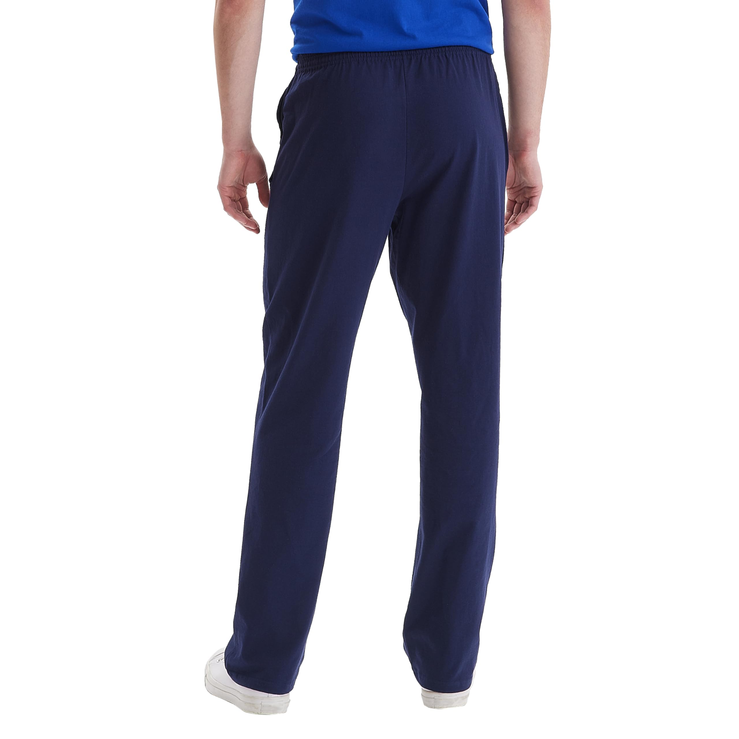 Description Heat up or chill out with Hanes Essentials jersey pants that transition from work-out to loungewear mainstay. Crafted from cotton (heathers are a cotton blend), these open-bottom menβs lounge pants will soon become your everyday go-to. Details like robust double-needle stitching at the leg openings, covered elastic waistband with interior drawcord, and convenient side-seam pockets make them a versatile rotation favorite. Top with your favorite Hanes tee for a look that works at the gym, running errands, or just relaxing with friends. And hereβs the best part - these menβs pants are made from cotton responsibly grown on U.S. Farms.
