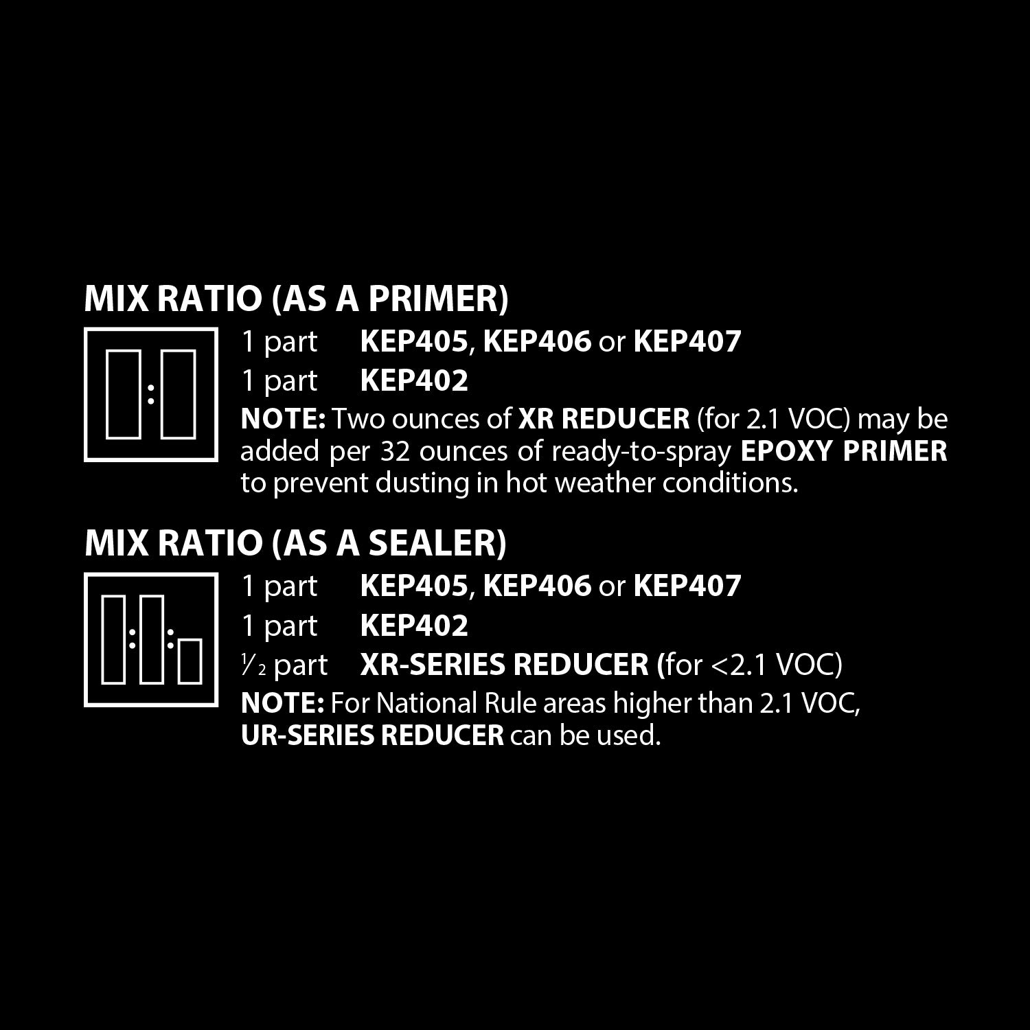 Custom Shop – KEP Series Epoxy Primer is great as a DTM primer but also can be used as an excellent sealer for all single stage Urethane and Basecoat Clearcoat. If used as a sealer add 1/2 part of XR70 or UR70 reducer, topcoat or basecoat can be applied in 30 minutes. Using KEP allows for excellent topcoat gloss holdout.