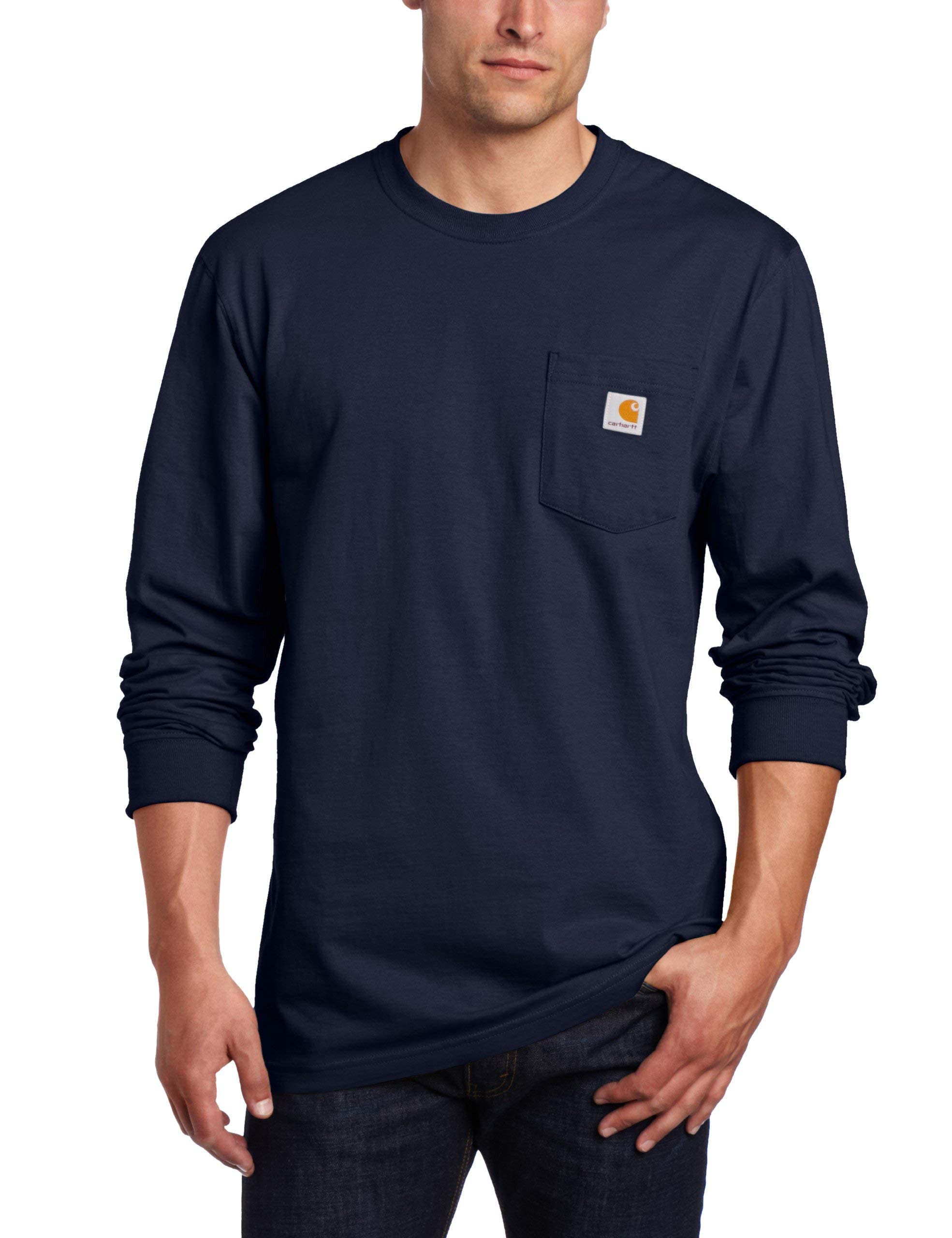 Description Carhartt's long sleeve work wear henley is an all-purpose work shirt that is perfect for cooler days or as a layering piece Made of 675-ounce, 100-percent cotton jersey, it features a rib-knit collar with a three-button closure and a left chest pocket It also has side-seamed construction to minimize twisting and maximize comfort ash fiber content is 99-percent , 1-percent polyester Heather gray fiber content is 90-percent cotton , 10-percent polyester