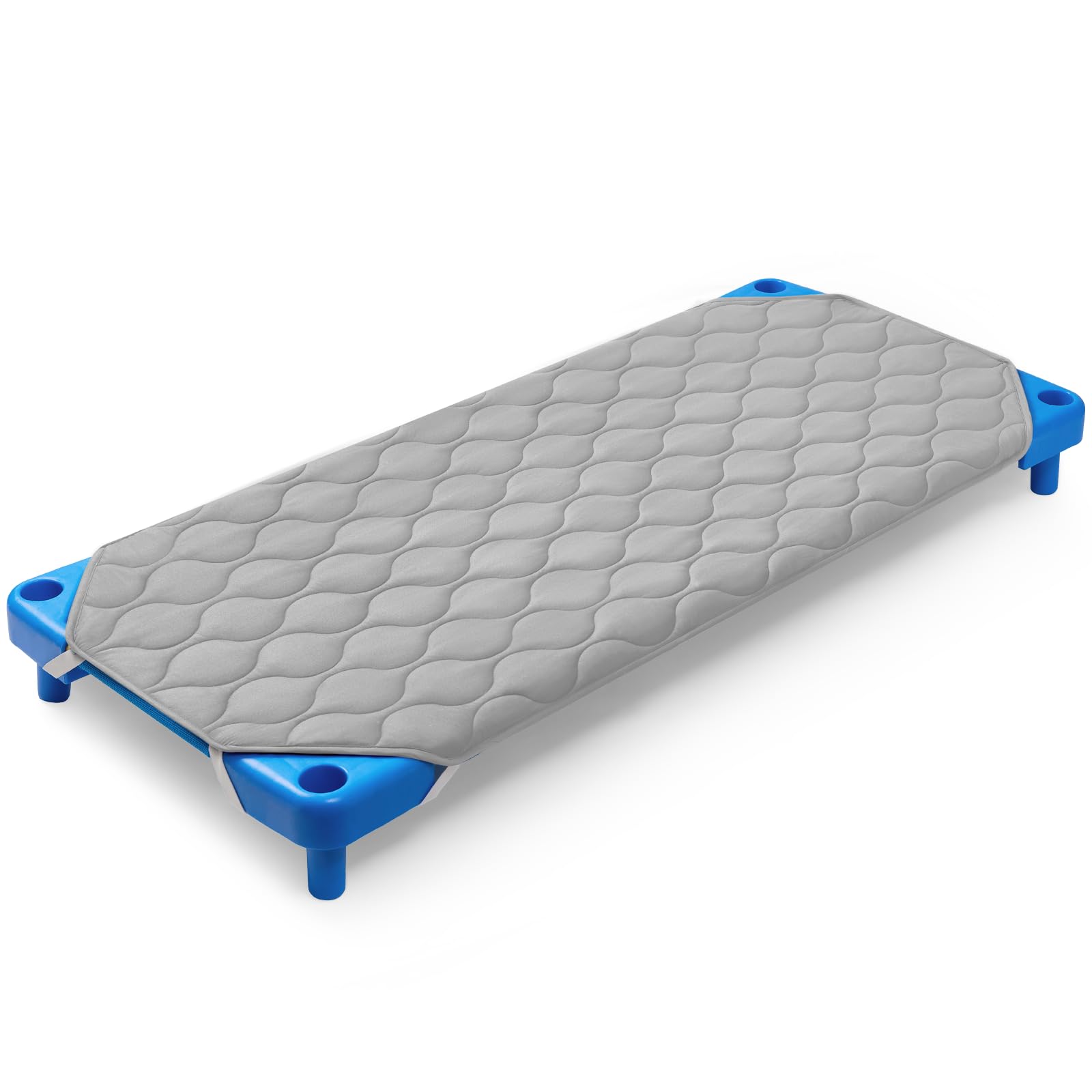Elastic Straps & Stackable: Our cot nap mats with widened elastic bands at four corners, keep securely in place, prevents cot nap mat from shifting during naps. Corner cut-out design not to blocking when stacking daycare cot