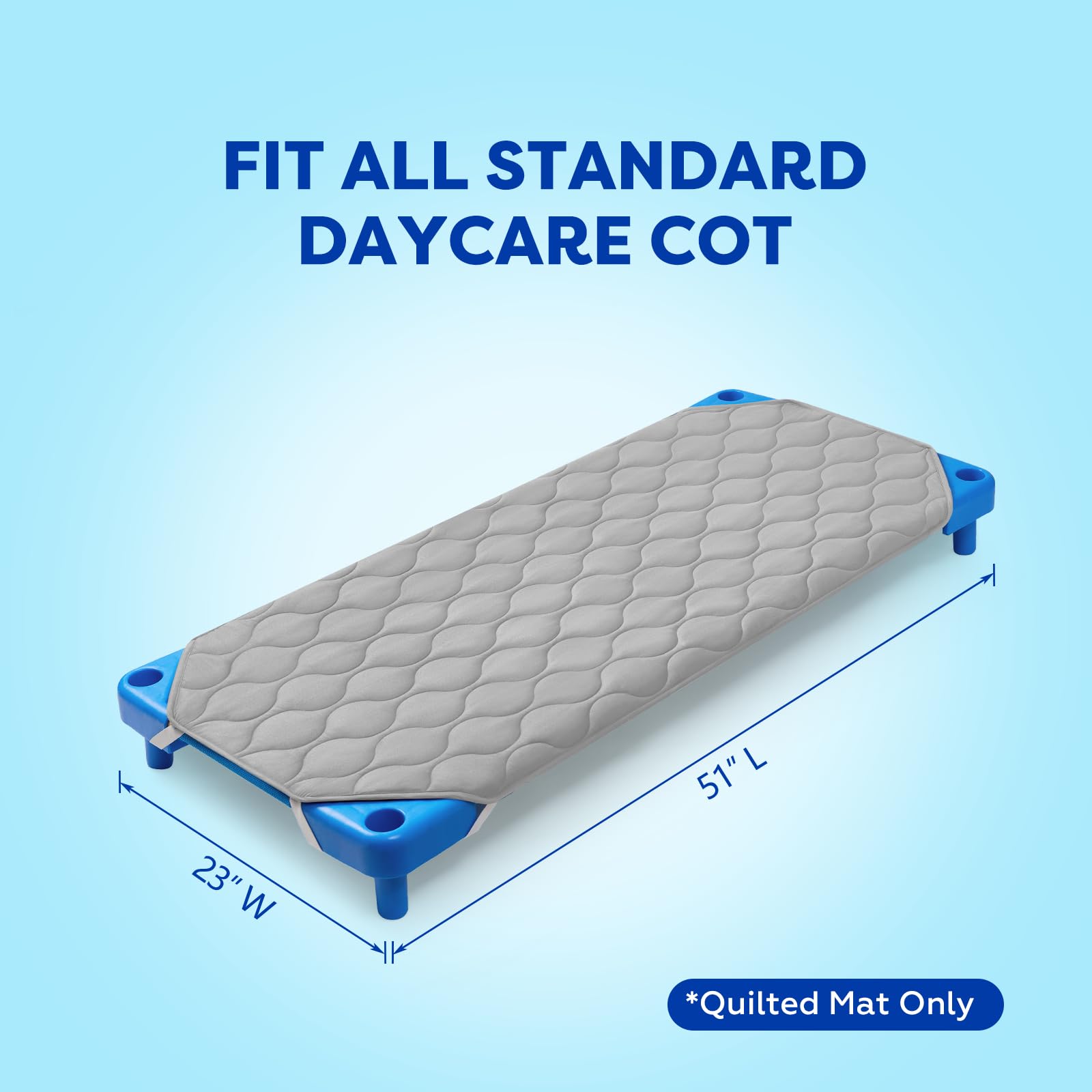 Fit Standard Size Daycare Cot: Measures 23″W by 51″L, our cot mat fit in all standard size daycare cot, toddler nap cot, preschool cot.*Quilted Mat Only. Cot is not included