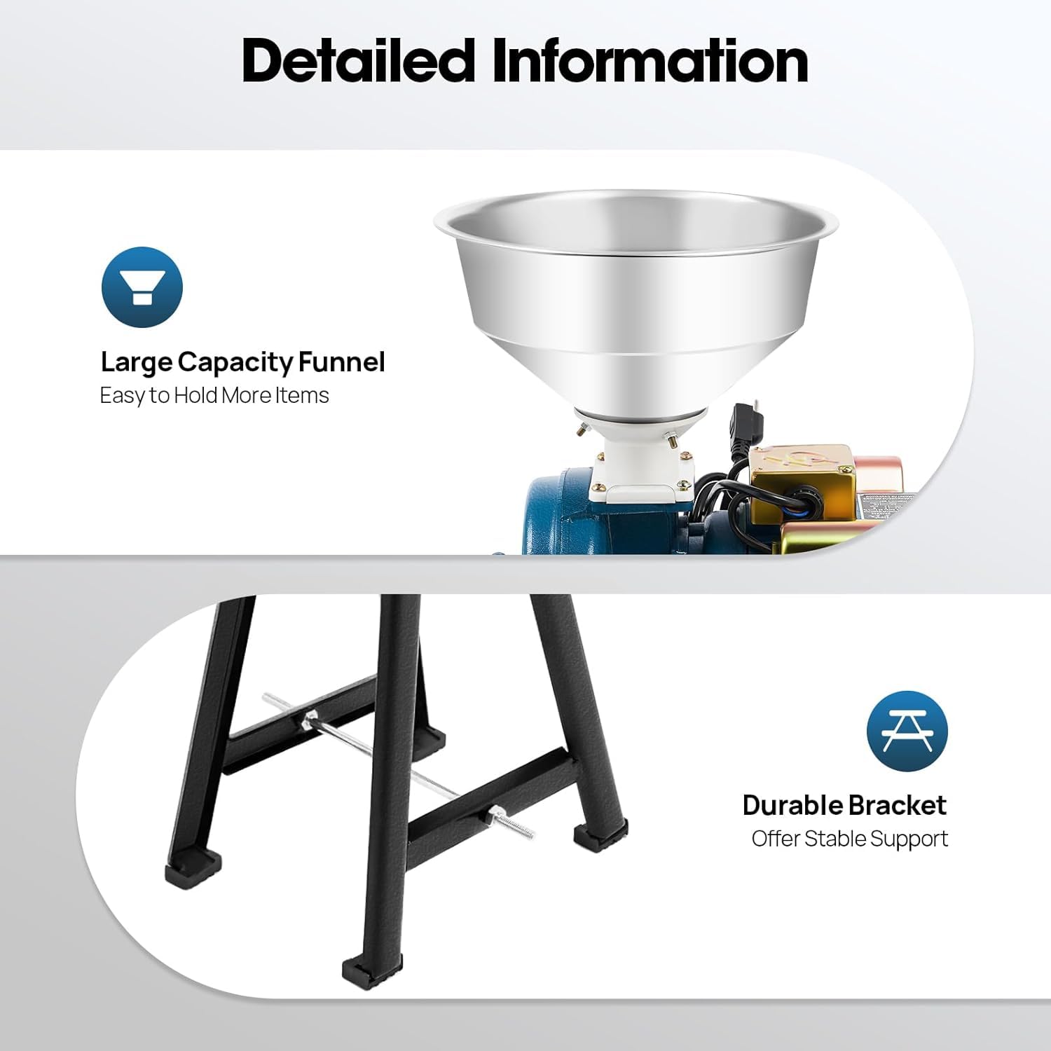 【Durable Design for Longevity】 Engineered with durability in mind, this grain mill is built with a thickened head and a durable steel grinding disc, ensuring a longer lifespan even under heavy usage. Additionally, the inclusion of multiple cooling holes facilitates efficient motor cooling, promoting heat dissipation and extending the working time of the equipment.
