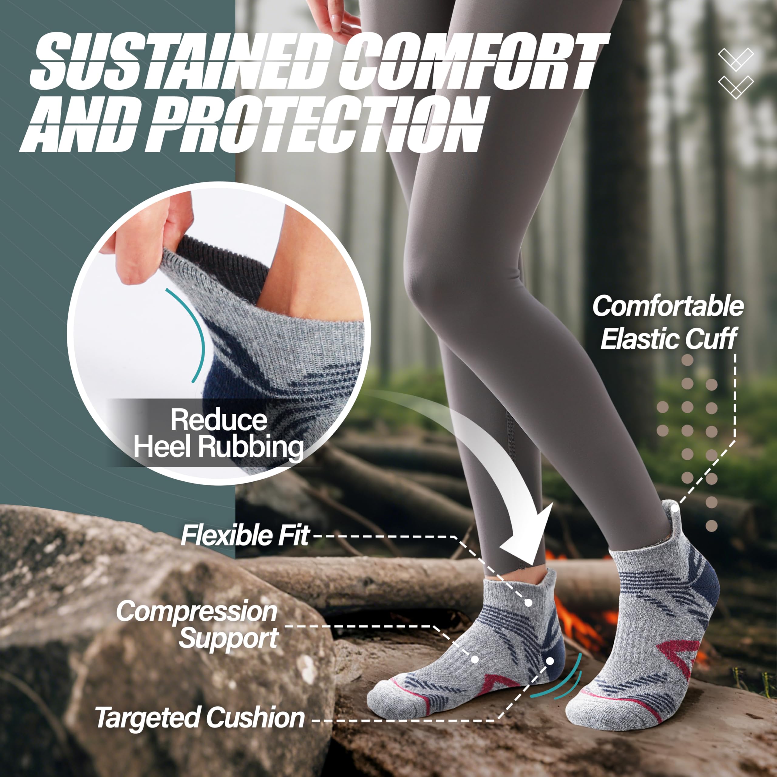 š PROTECTION FOR FEET : High stretchy fabric keeps socks fit snugly and prevents slipping.Targeted cushioning has better shock absorption, which can reduces the foot soreness and provides more protection for Achilles.Engineered heel and seamless toe do not grind your feet and avoid blisters , providing the most comprehensive protection for your feet.