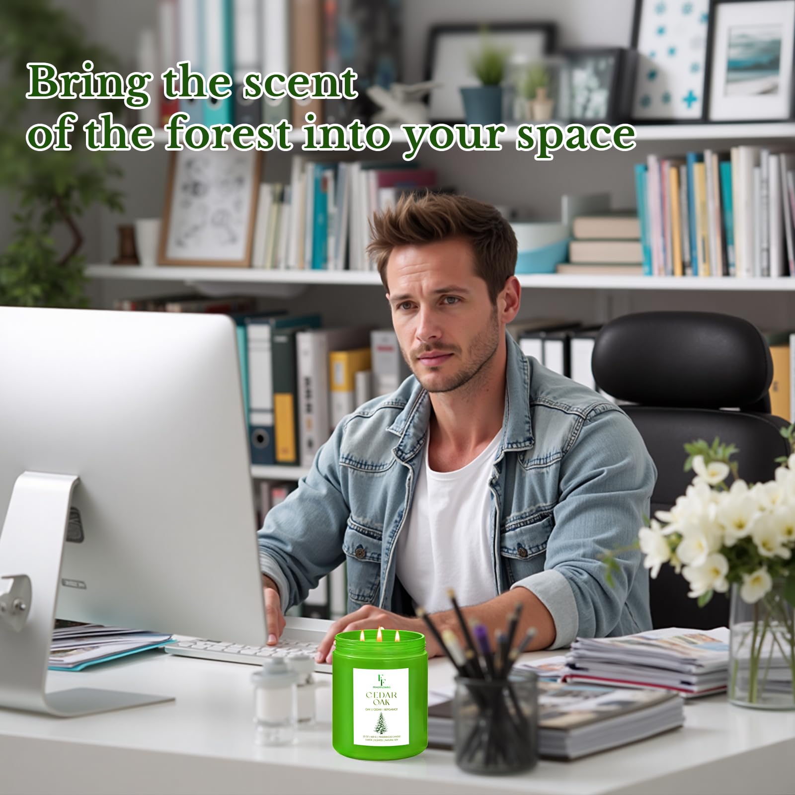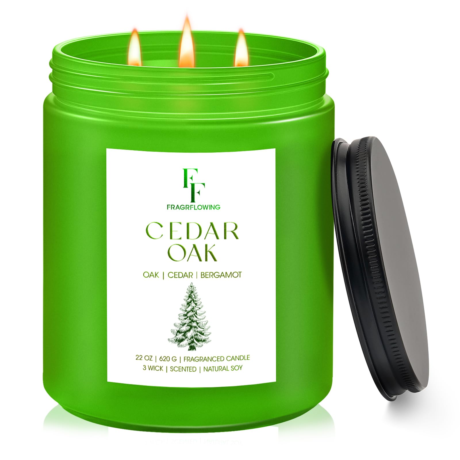 Indulge in Nature's Aroma: Our cedar oak large candle features a captivating blend of cedar, oak, and bergamot, offers a warm, woody fragrance that creates an inviting atmosphere in your home, perfect for relaxation and stress relief