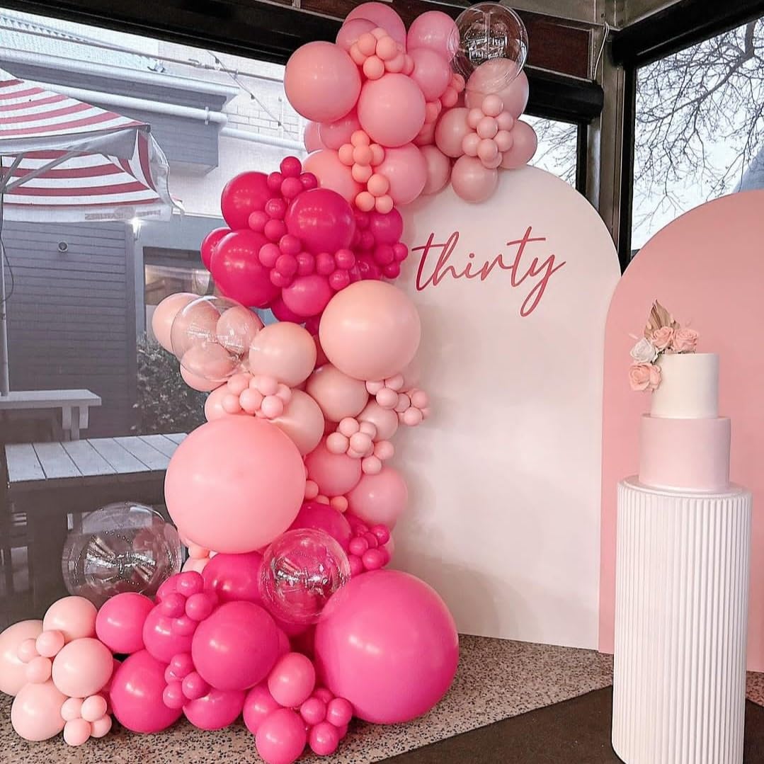 Superior Material: These pink balloons are made of premium latex material with excellent elasticity and durability, which ensures they won't burst or deflate easily. This balloon set is suitable for both air and helium inflation, kid and pet friendly, and a colorful party decoration of choice.