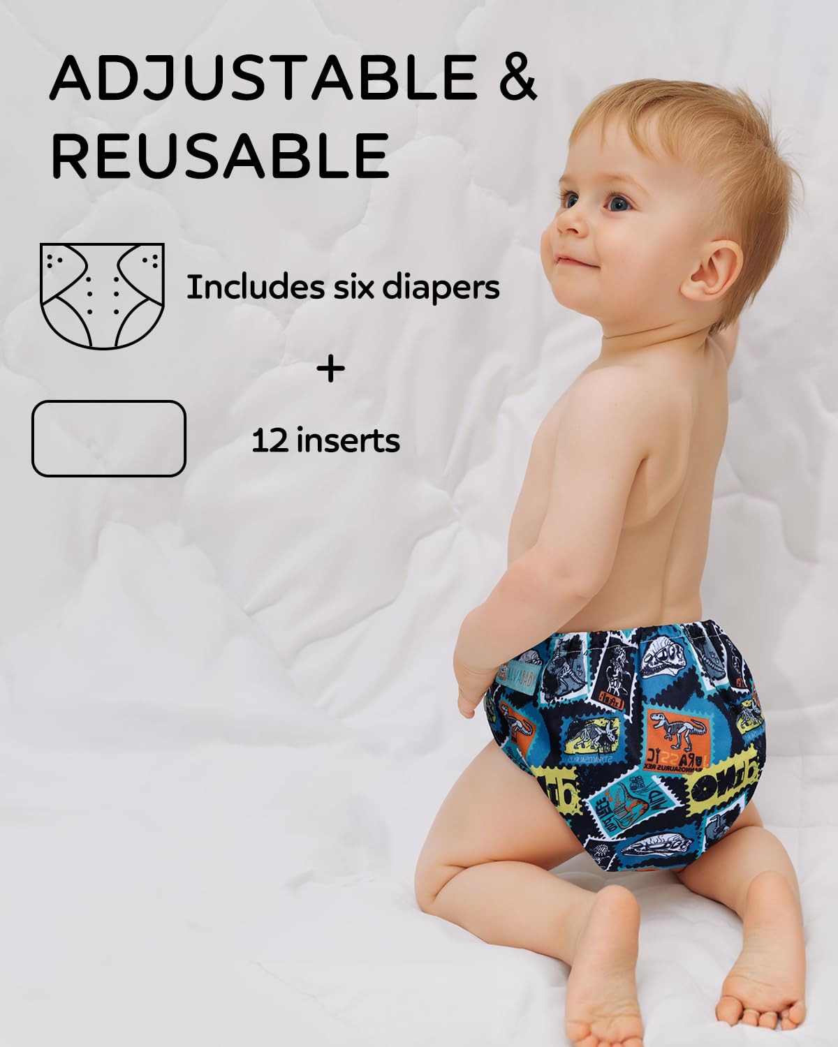 PACKING LIST: This pack includes six diapers and 12 inserts, can keep your baby dry and comfortable.